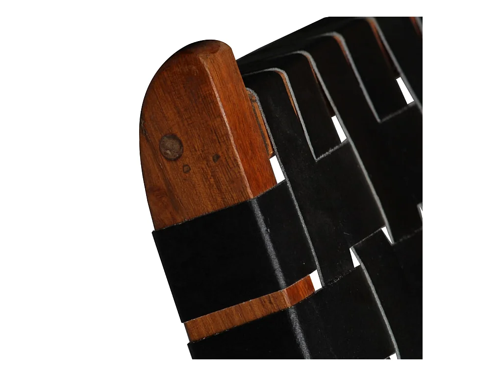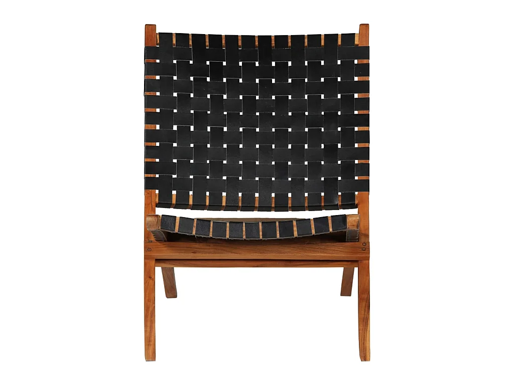 Chaise pliable Bandes croisées Noir Cuir véritable SEF45714