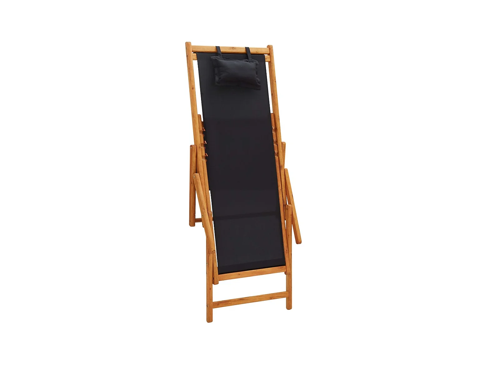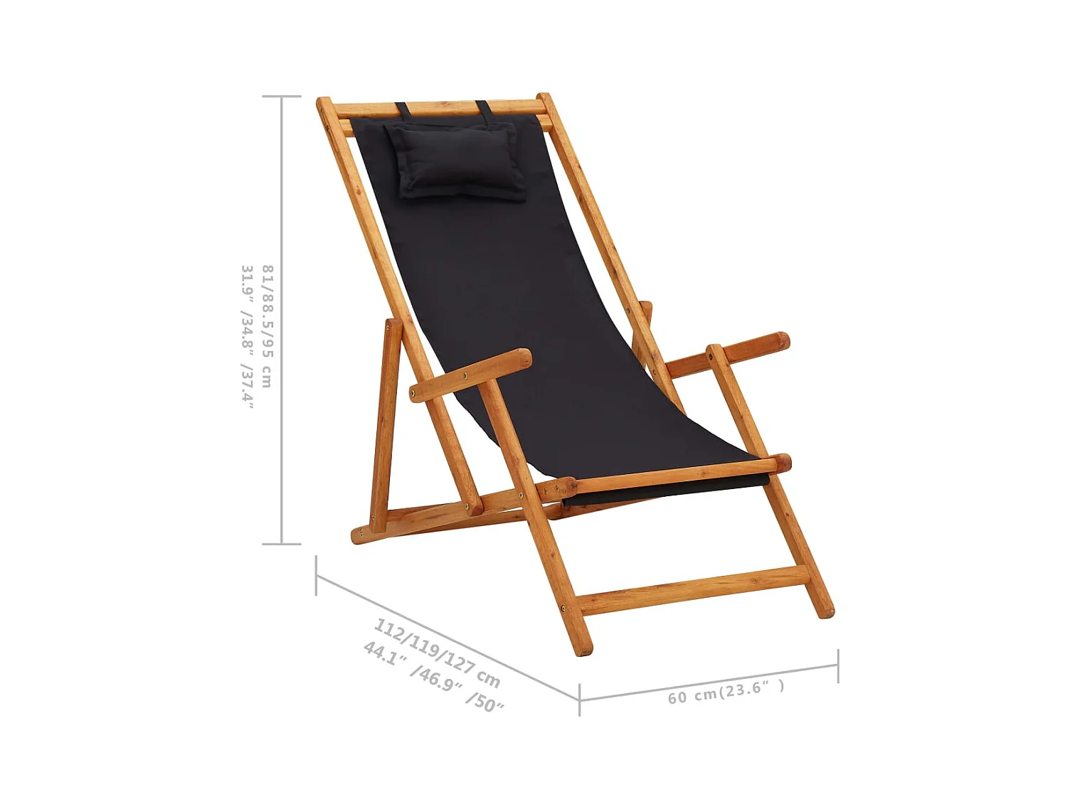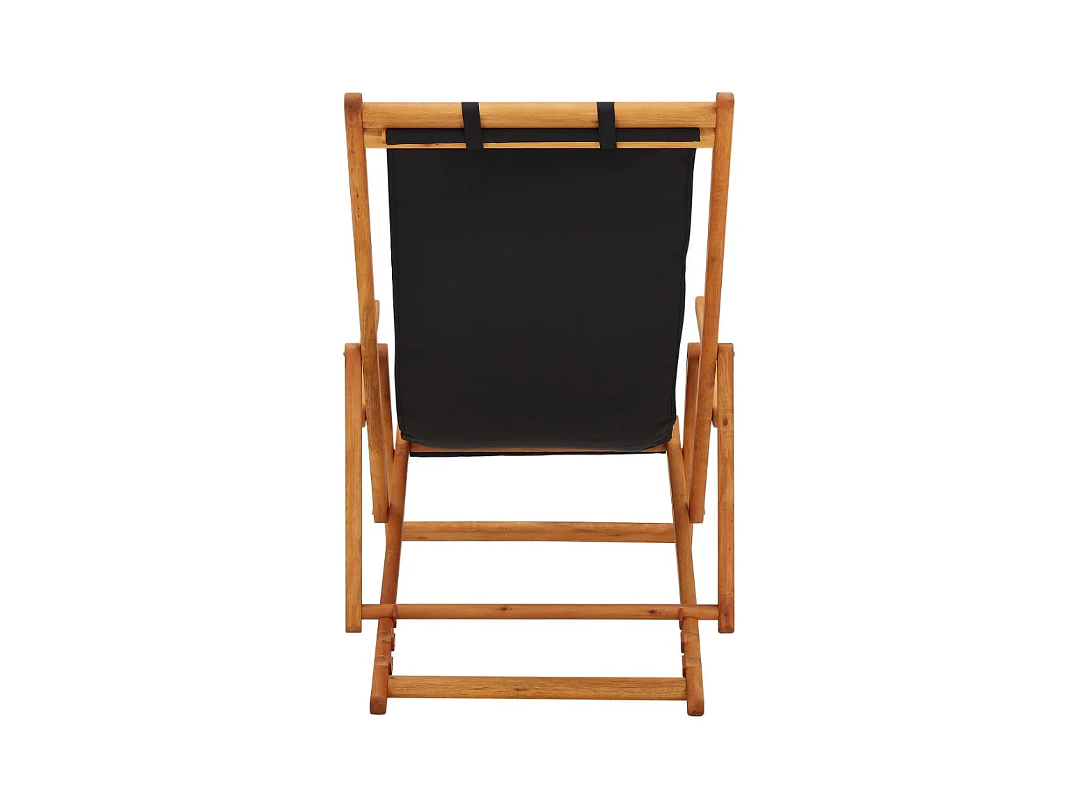 Chaise pliable de plage bois d'eucalyptus solide et tissu noir