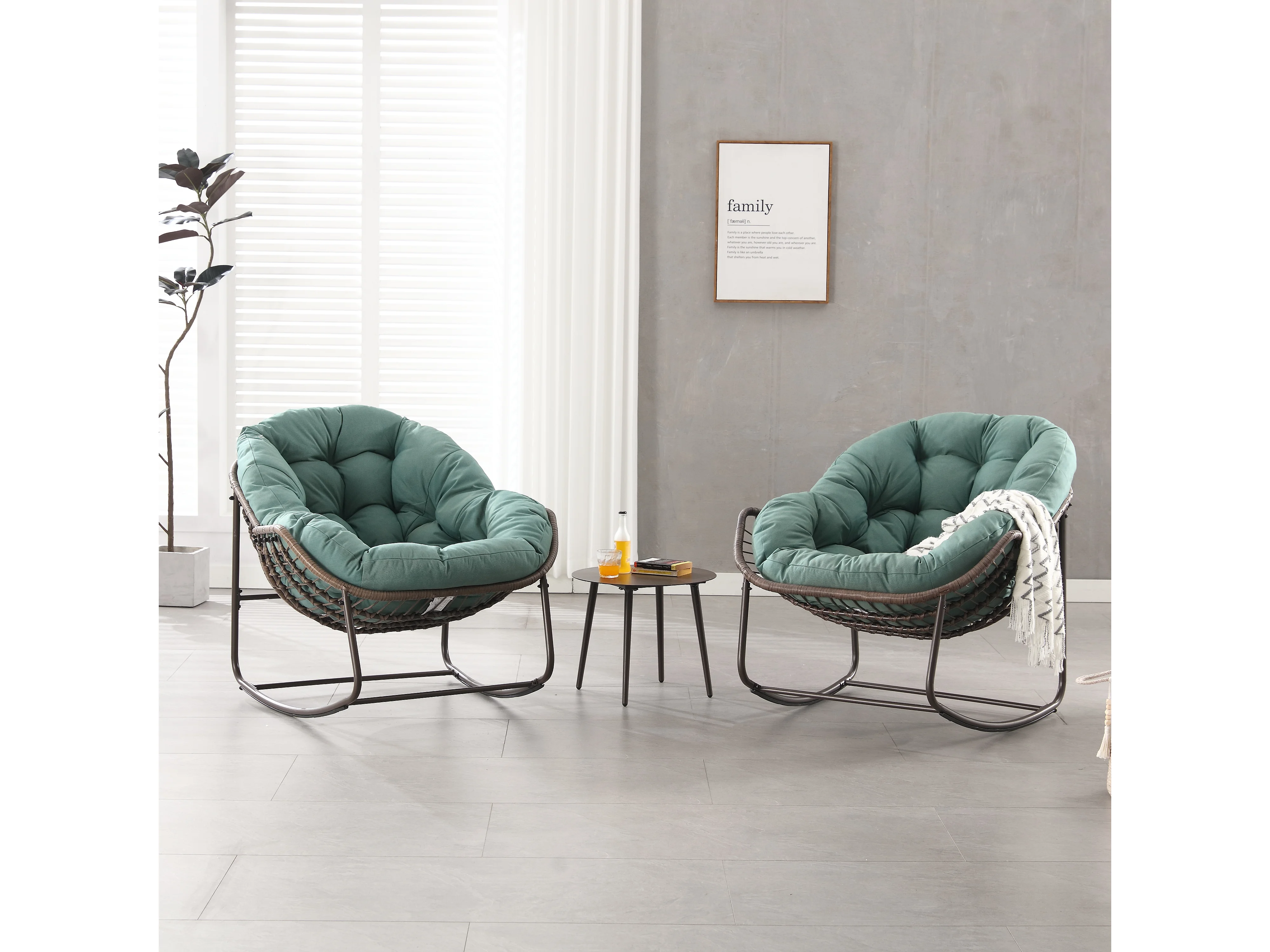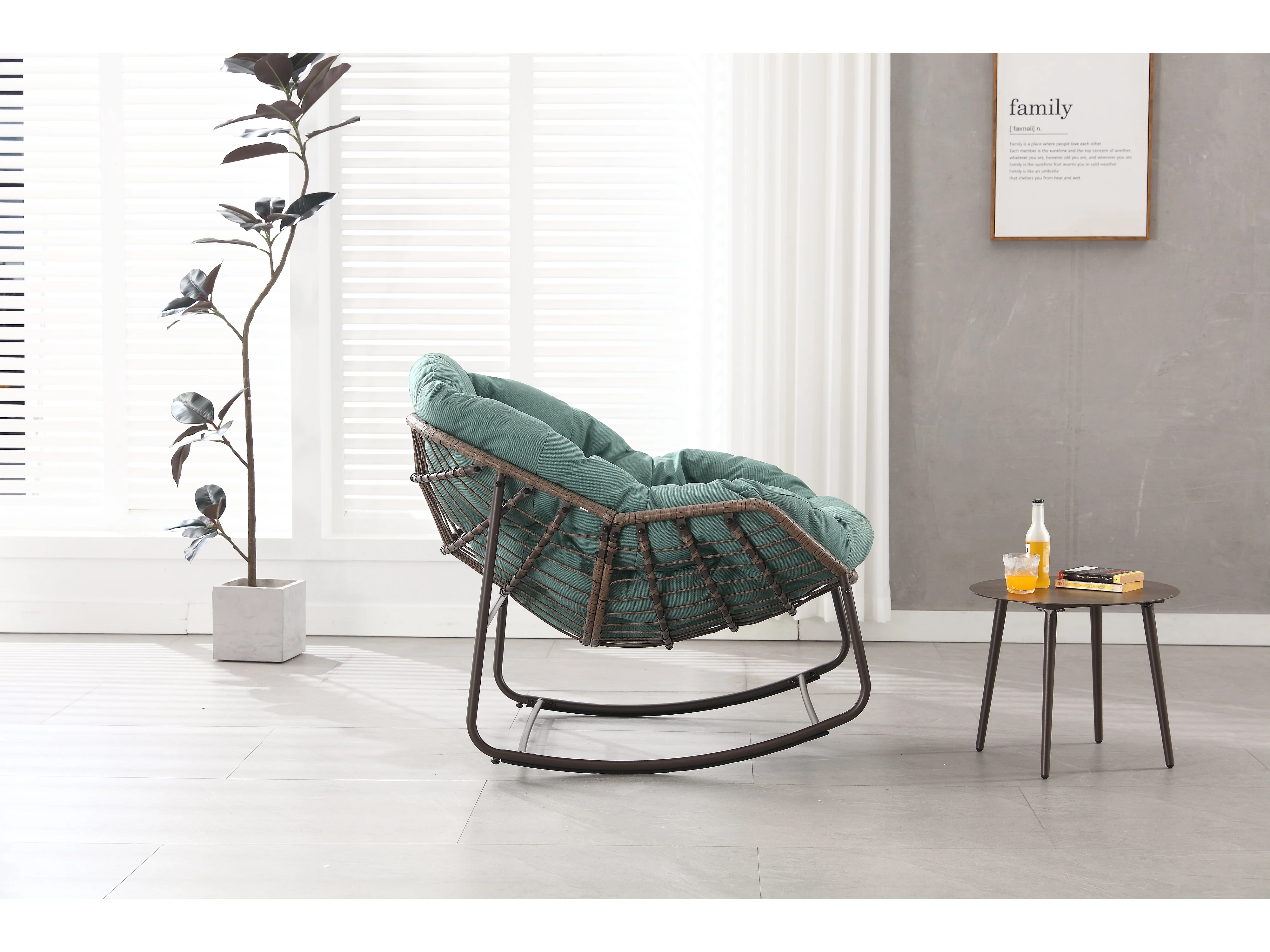 Chaise Rocking XXL en Osier pour Terrasse, Chaise Lounge Confortable avec Coussin Épais, Structure en Acier, Vert Clair (99x76x26cm)