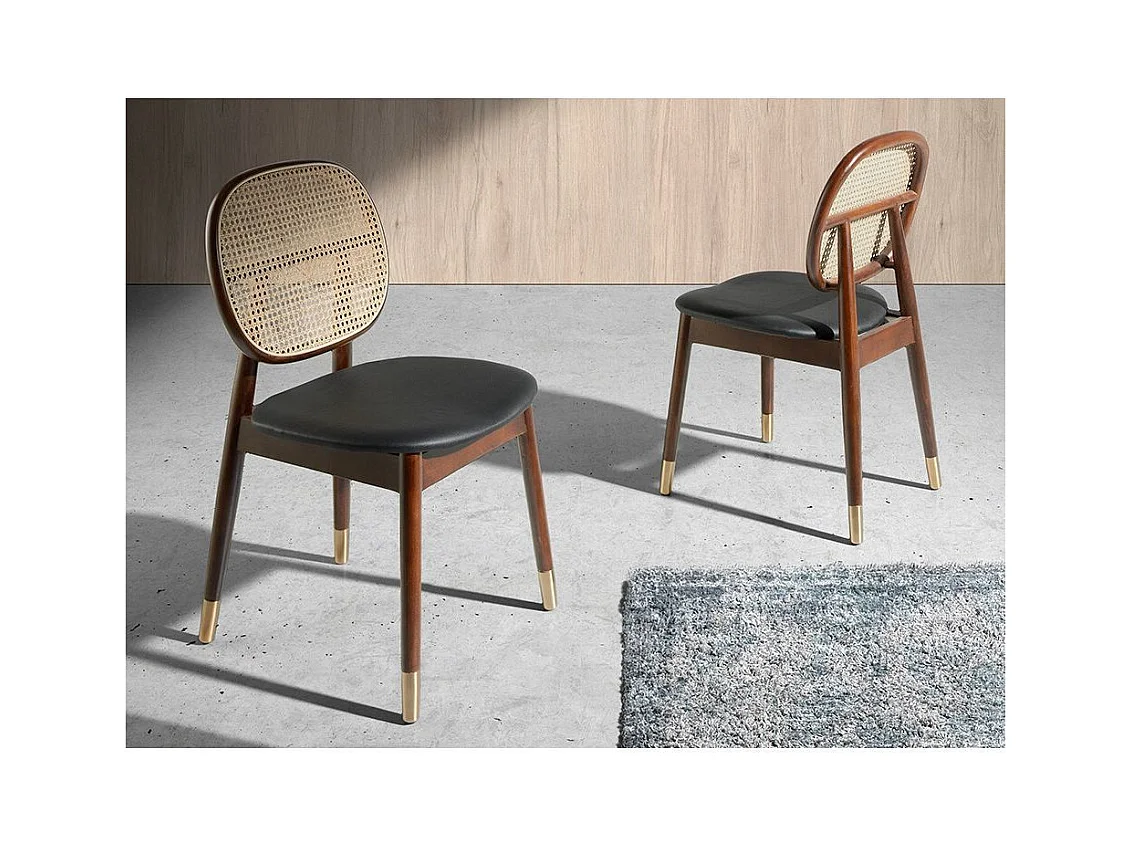 Chaise rotin simili cuir noir et bois de frêne Lola - Lot de 2-Couleur Aqua 72 Gris foncé