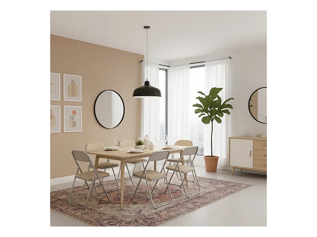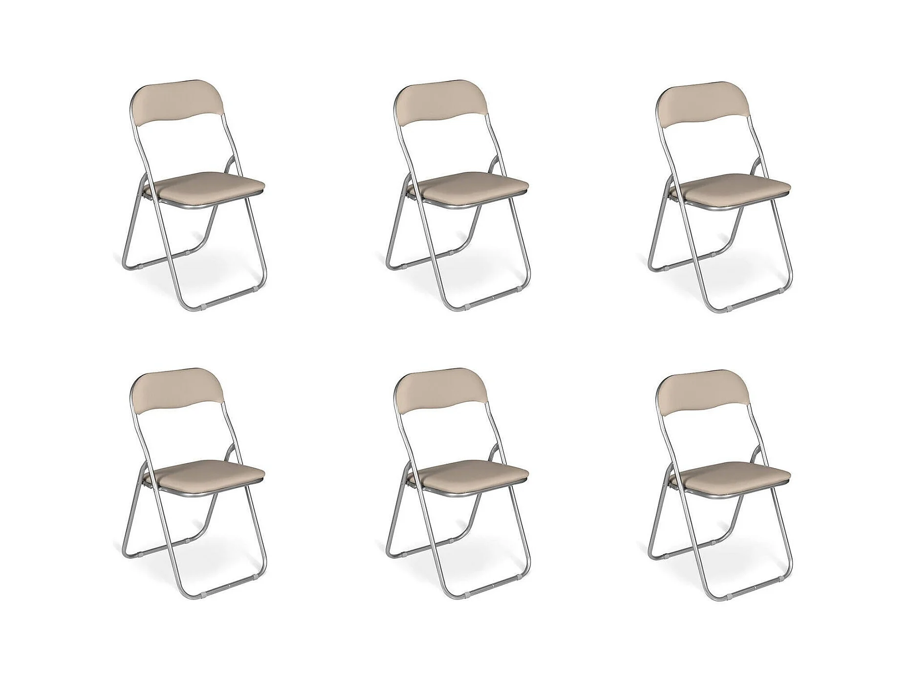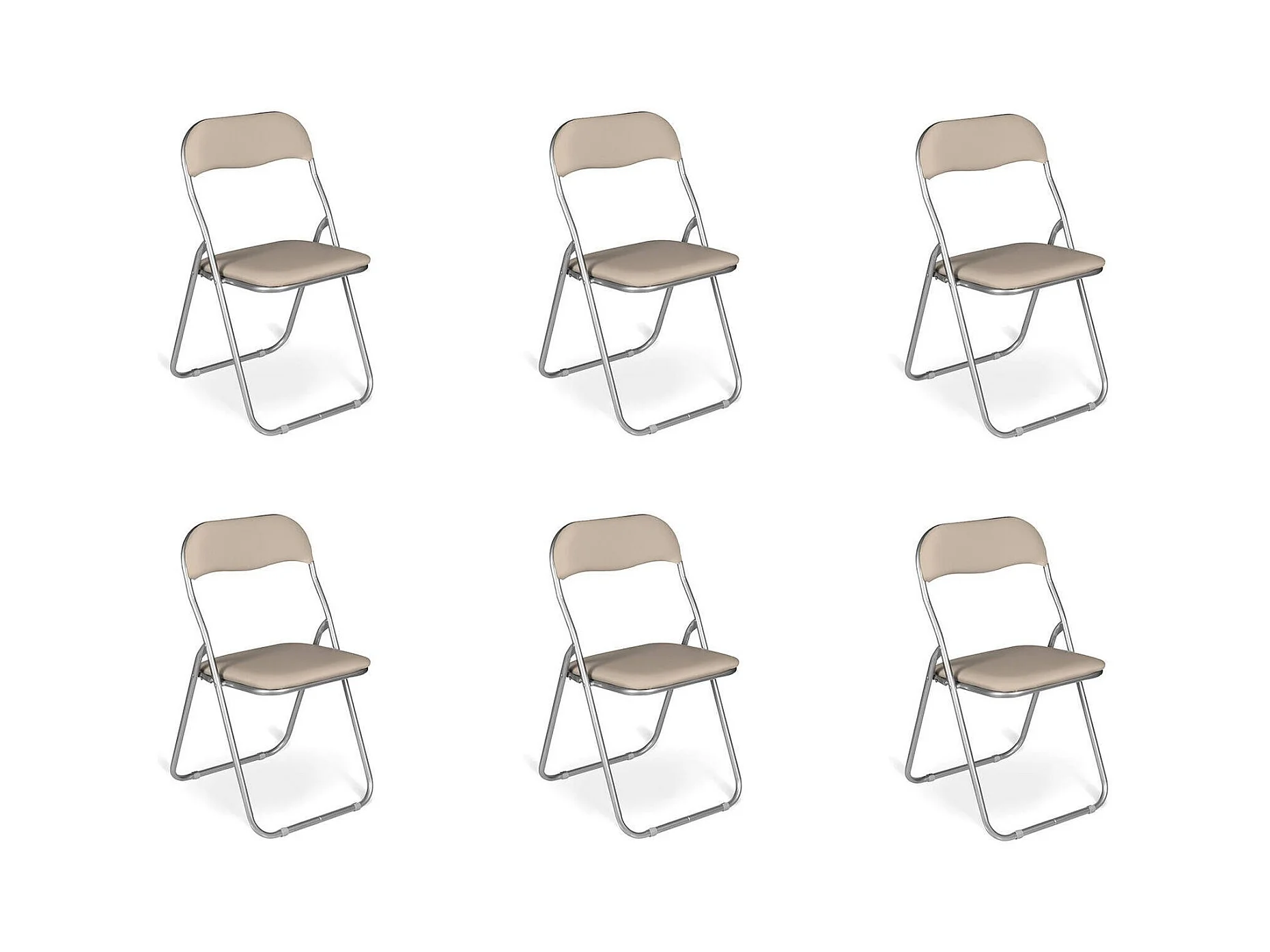 Lot de 6 chaises pliantes Dgraf, Fauteuil gain de place, Chaise invité, Siège de réunion en simili cuir, 43x47h80 cm, Beige