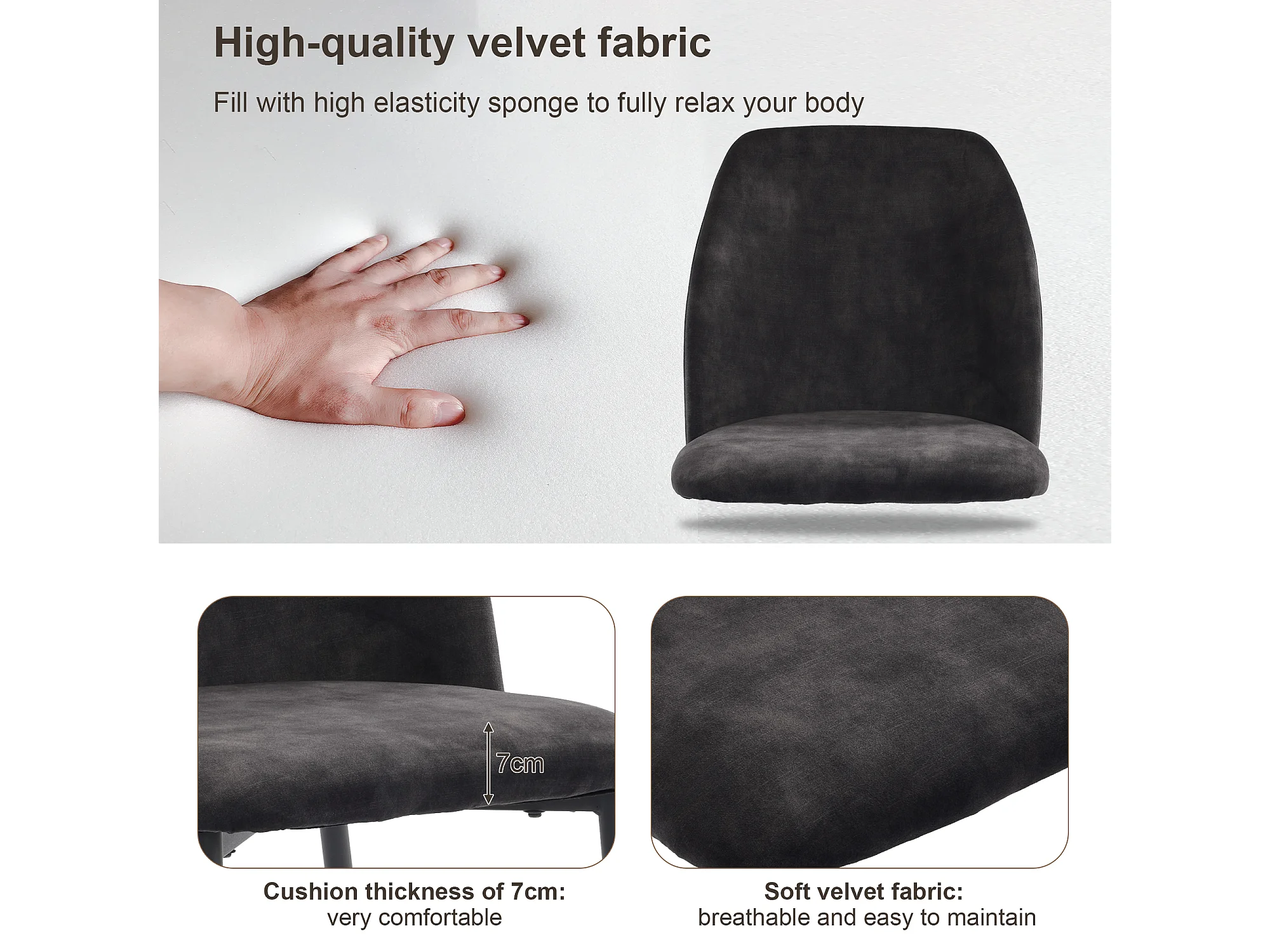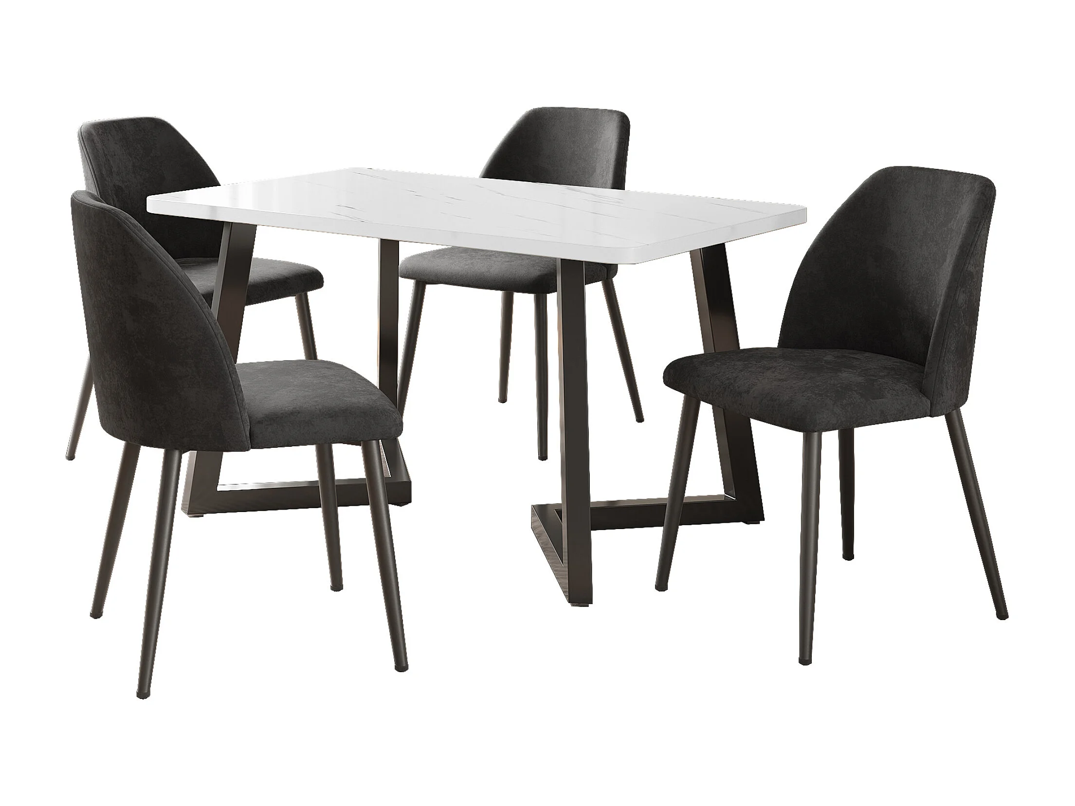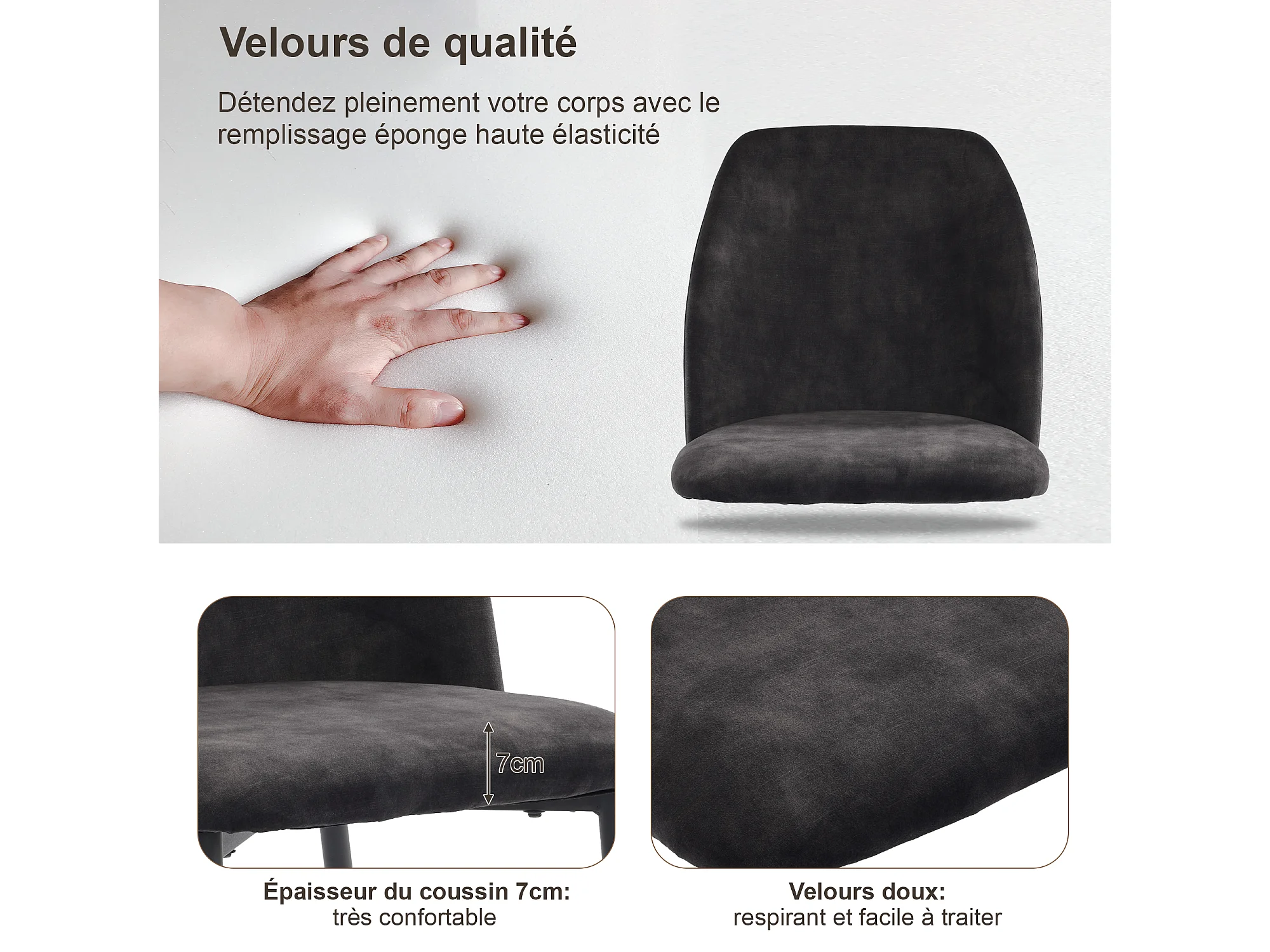 Chaise Salle à Manger, 4 Pièces, Pieds Métalliques, Gris Foncé