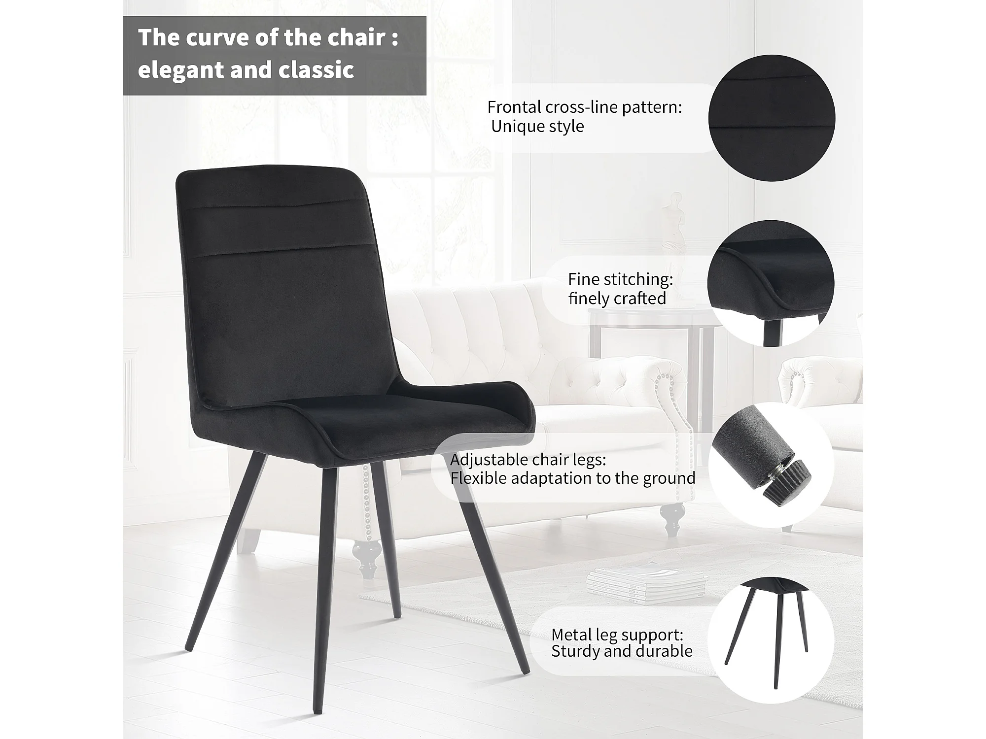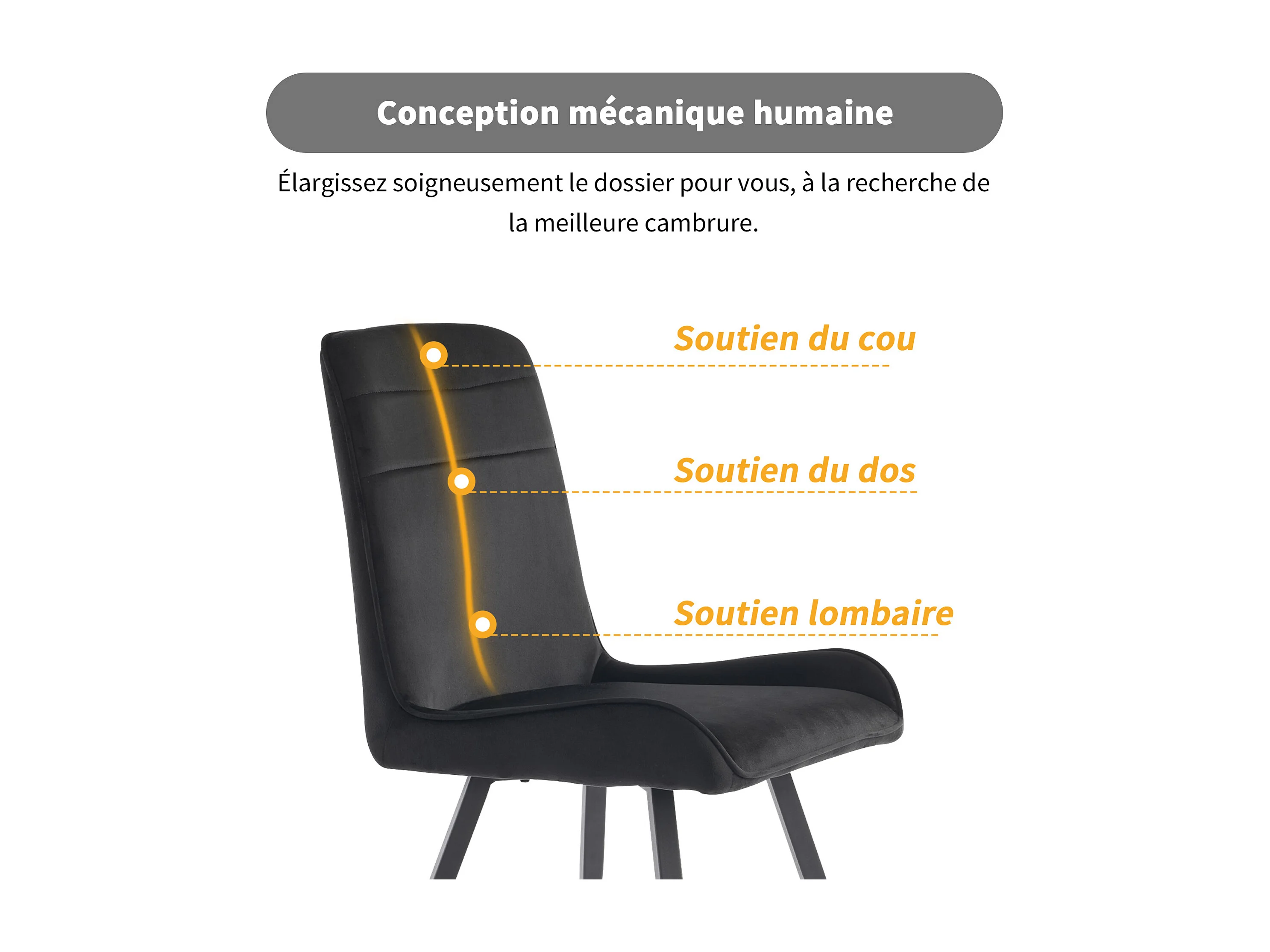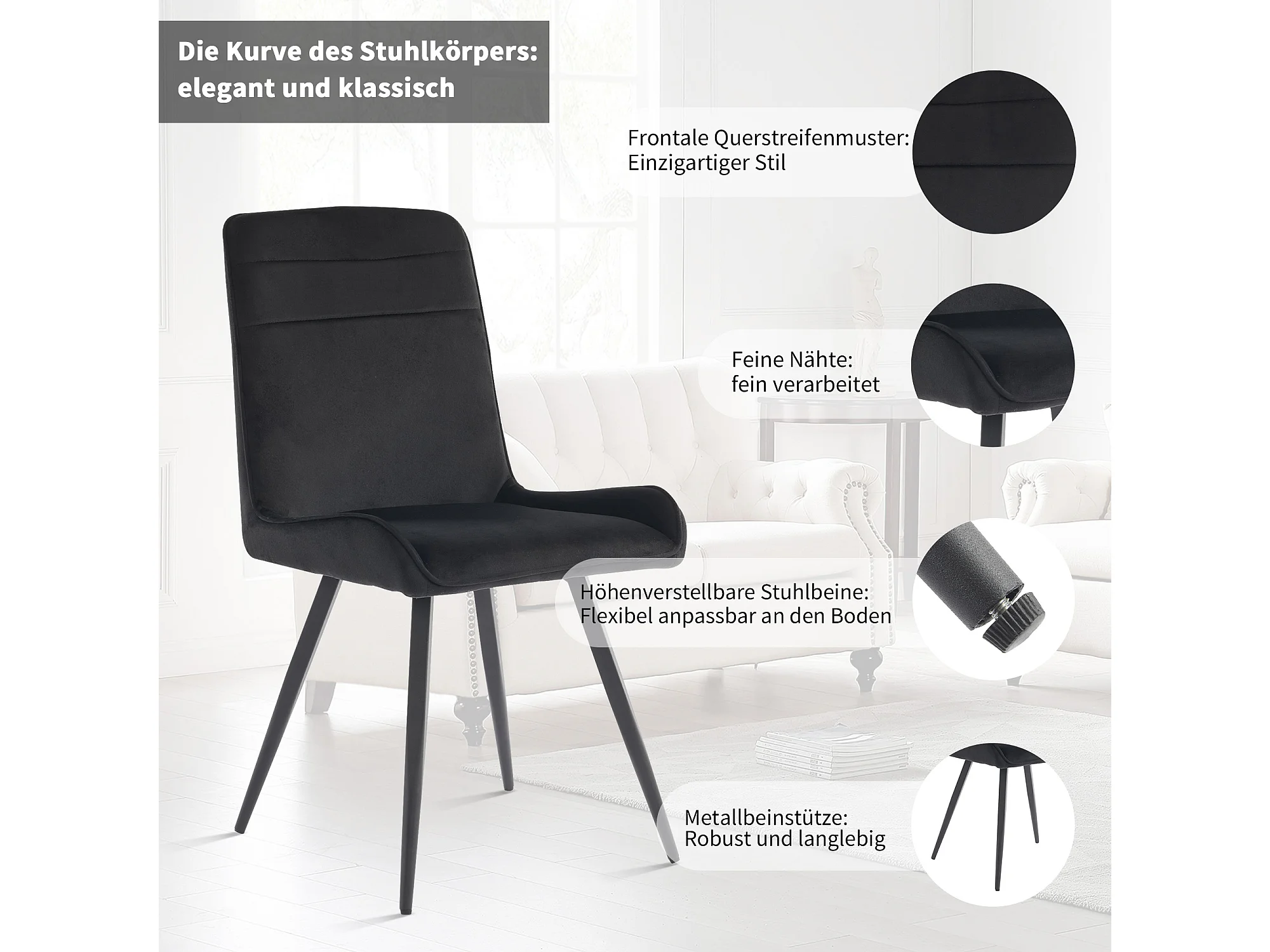 Chaise Salle à Manger, 6 Pièces, Pieds Métalliques, Noir