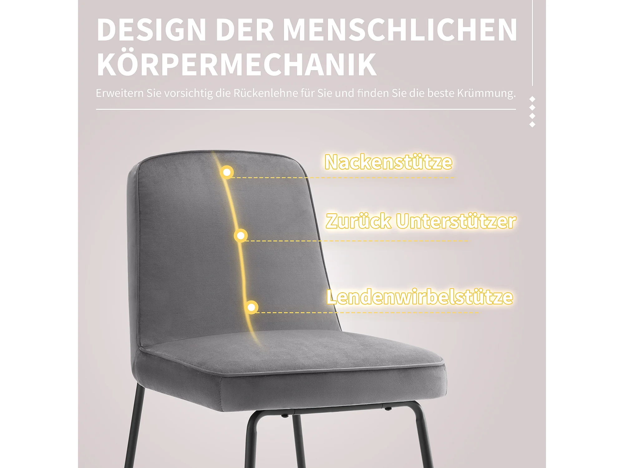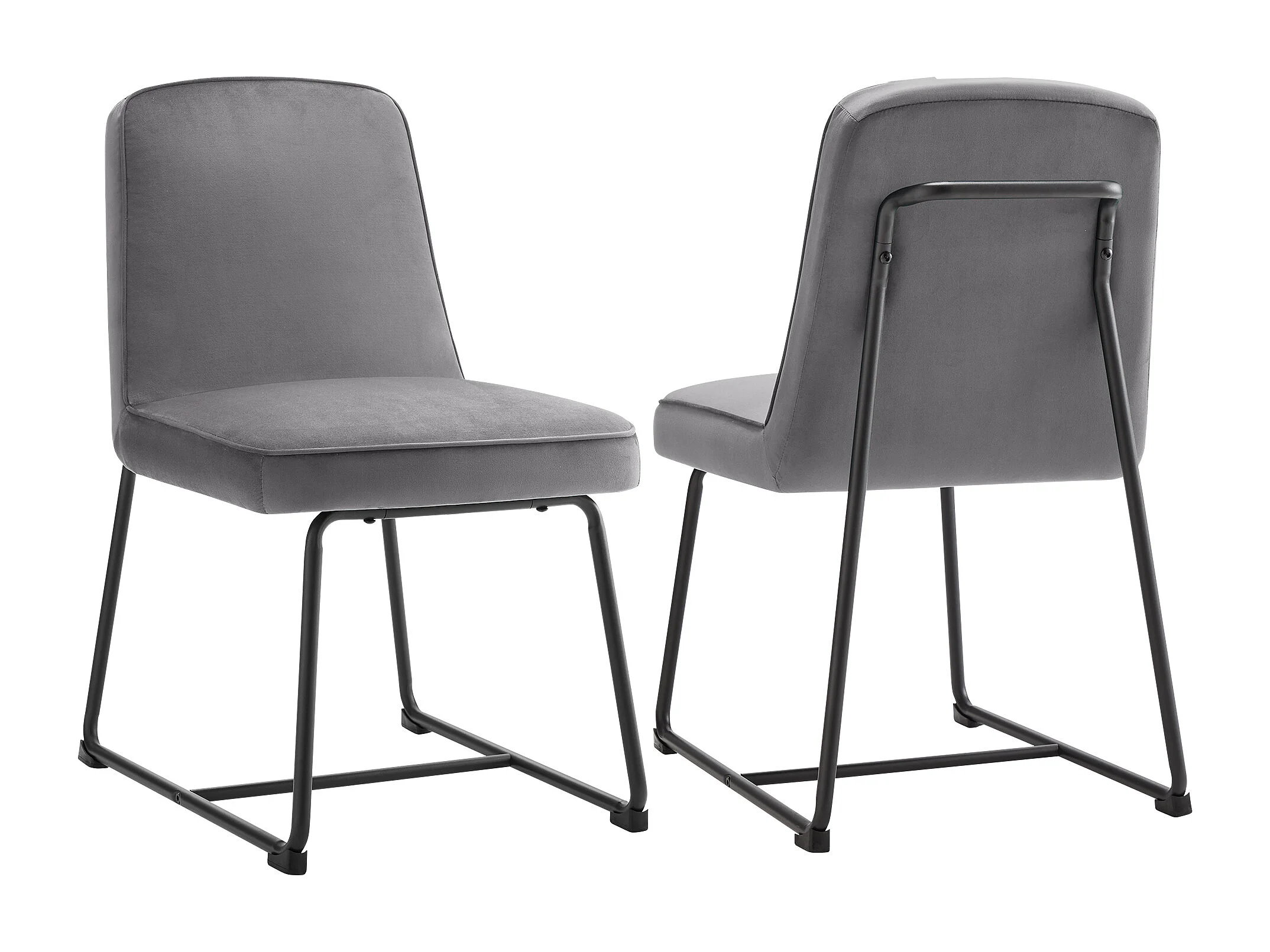 Chaise Salle à Manger Velours, 2 Pièces, Métal Noir, Accoudoirs, Gris