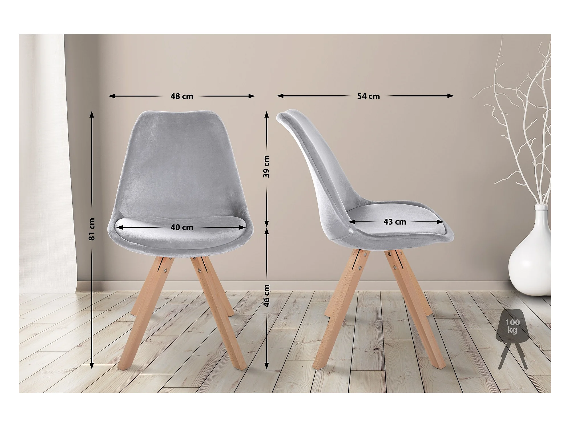 chaise salle à manger - Velours & Nature (carré) - Gris clair - Sofia
