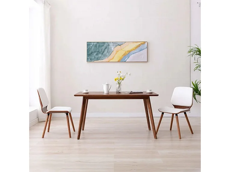 Chaise simili cuir blanc et pieds bois clair Amita - Lot de 2