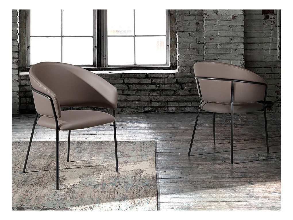 Chaise similicuir de vison et pieds acier noir Rody - Lot de 2-Couleur DUO 40