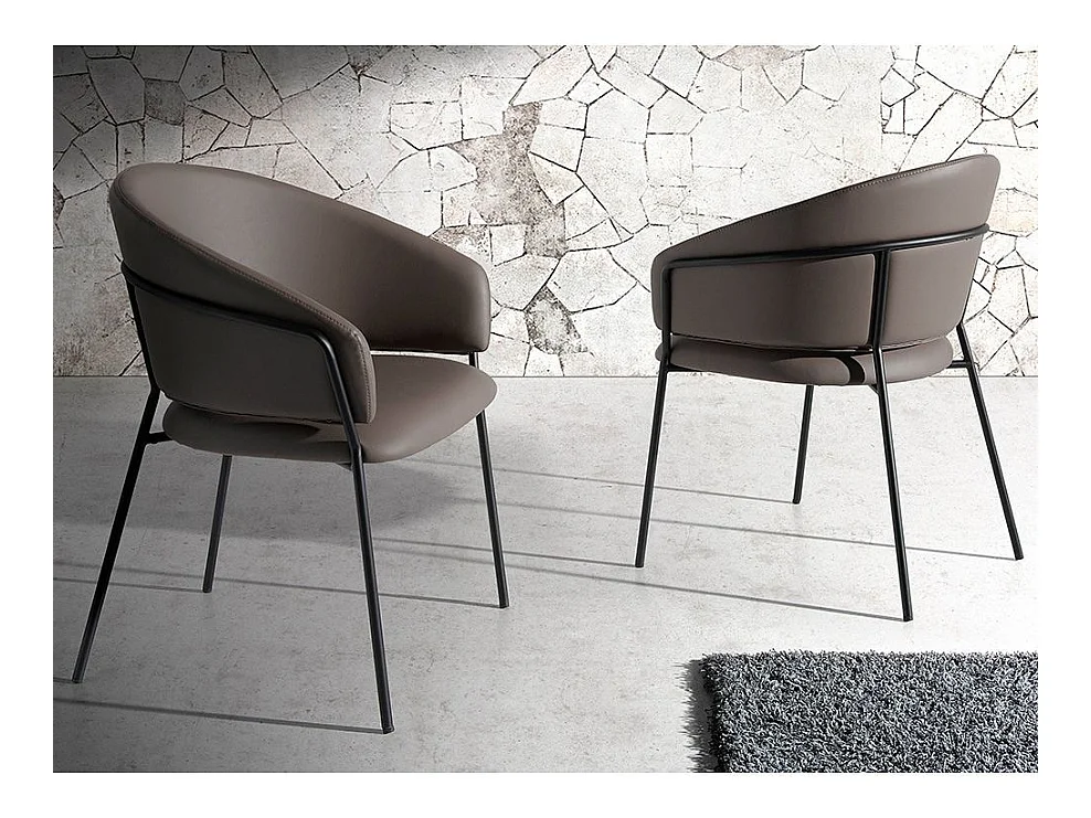 Chaise similicuir de vison et pieds acier noir Rody - Lot de 2-Couleur MIRAGE 45