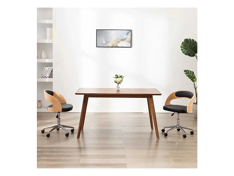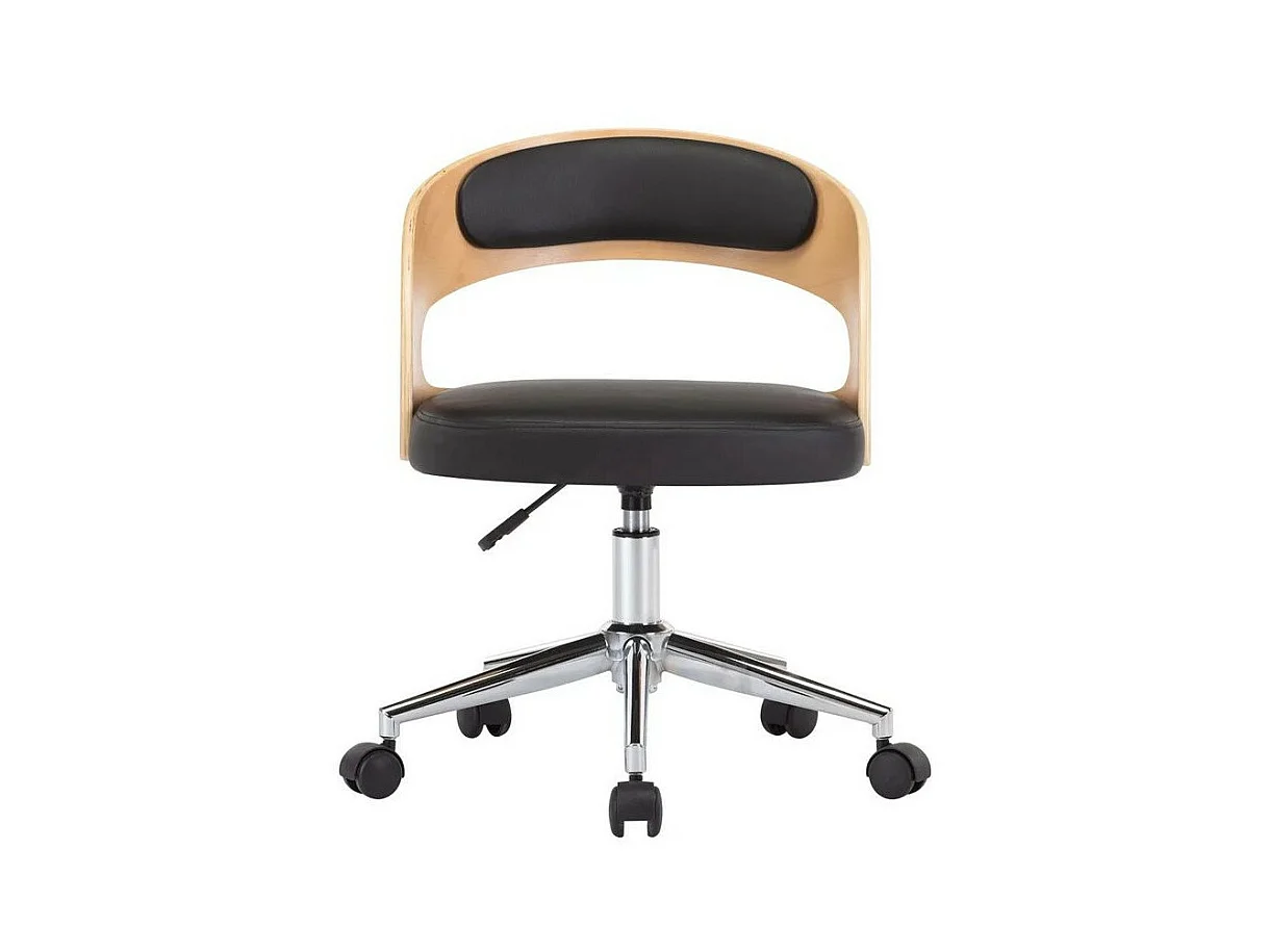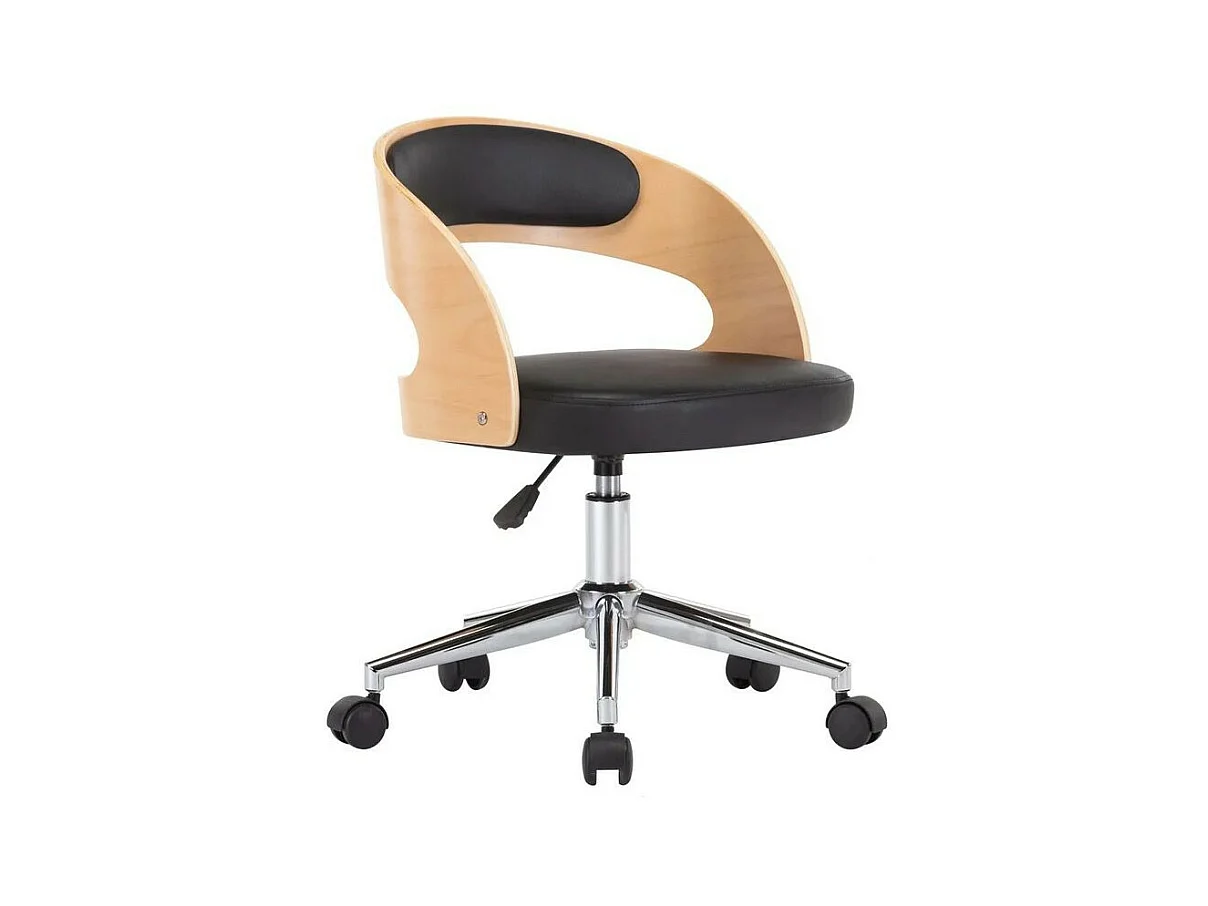 Chaise sur roulettes simili cuir noir et bois clair Esinn