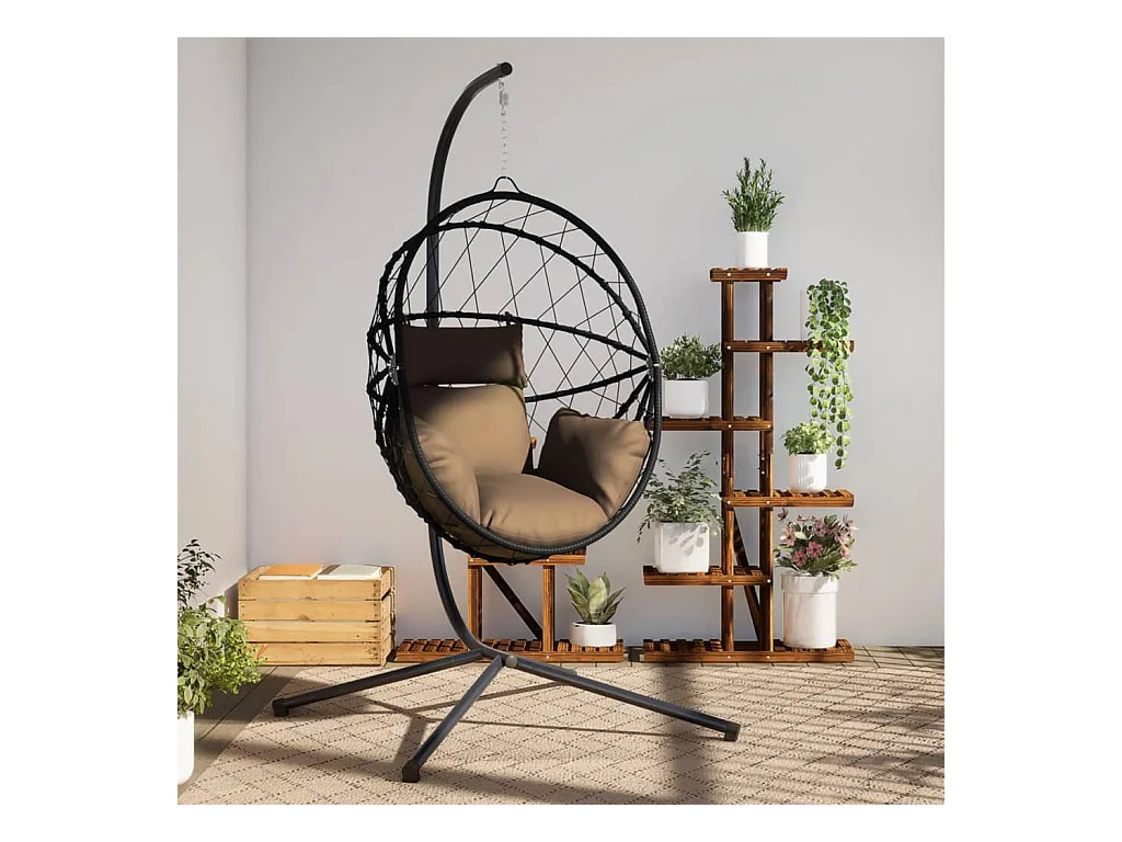Chaise suspendue en forme d'œuf et support taupe rotin et acier