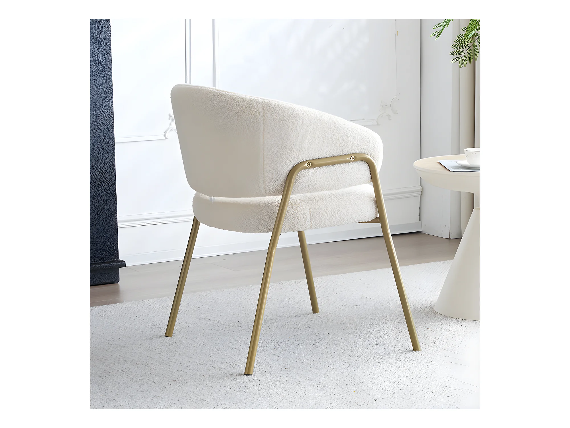 Fauteuil de loisir 4 pièces, luxe léger, pieds métalliques, fausse fourrure beige (64.77x59.69x55.88 cm)