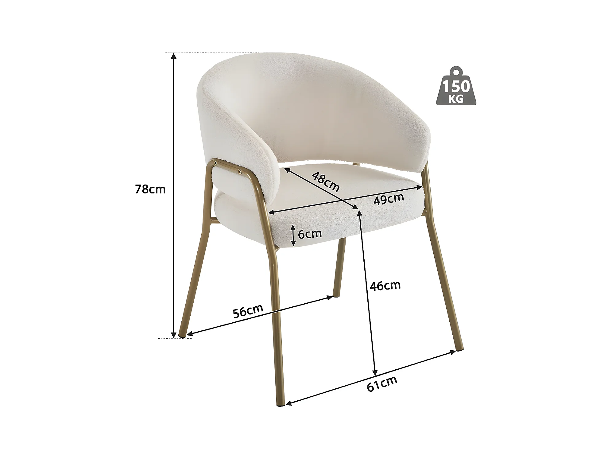 Chaise de Salon, Lot de 6, Design Luxe Léger, Fourrure Synthétique, Pieds Métalliques, Beige (64.77x59.69x55.88 cm)
