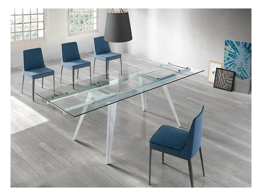 Table à manger extensible 6 à 10 personnes en céramique, verre trempé et métal - Effet marbre blanc et anthracite - COREMA de Maison Céphy