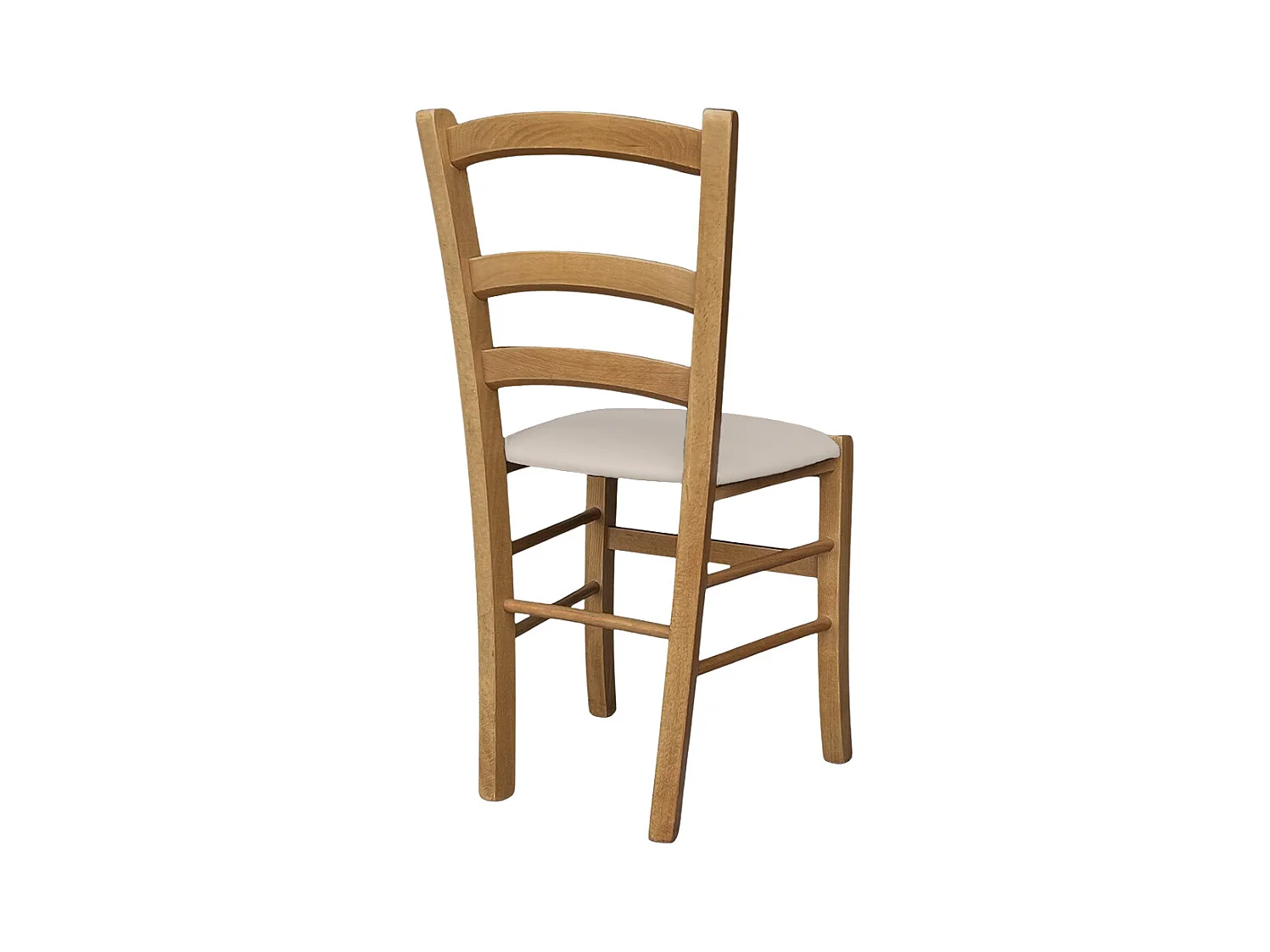Chaise Venezia en bois de noyer clair avec assise rembourrée en similicuir beige