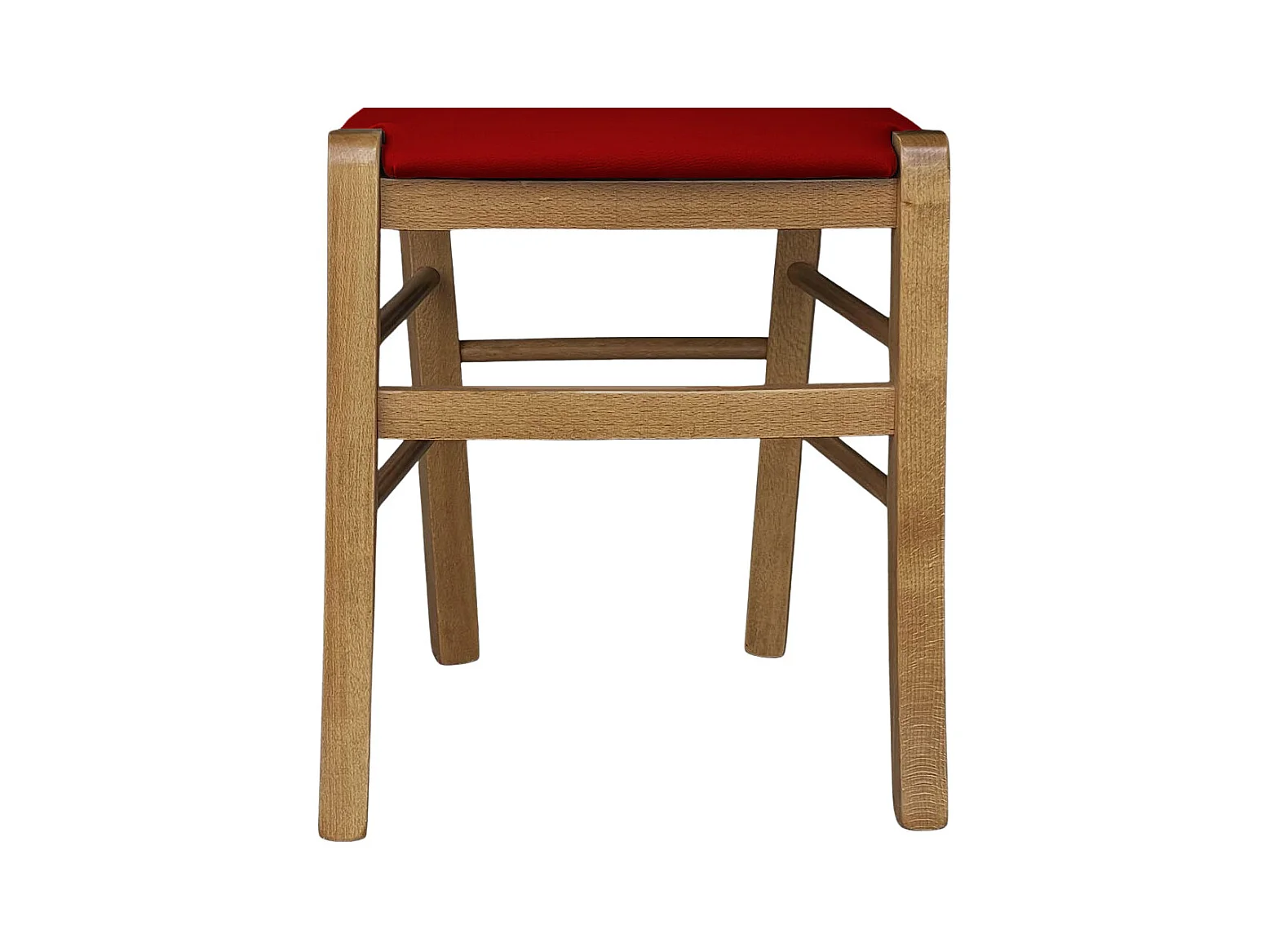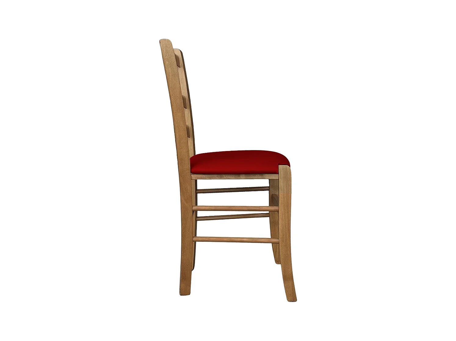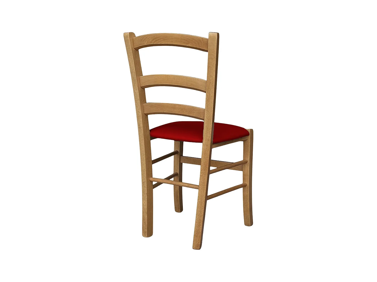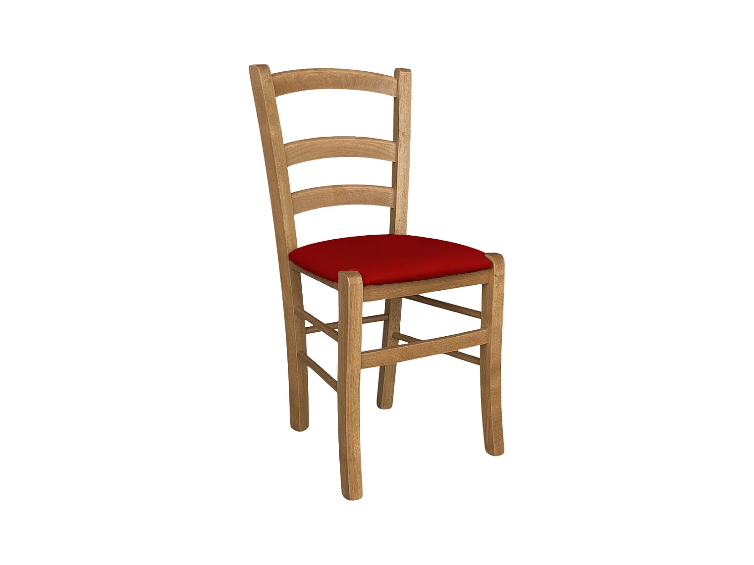 Chaise Venezia en bois de noyer clair avec assise rembourrée en similicuir rouge