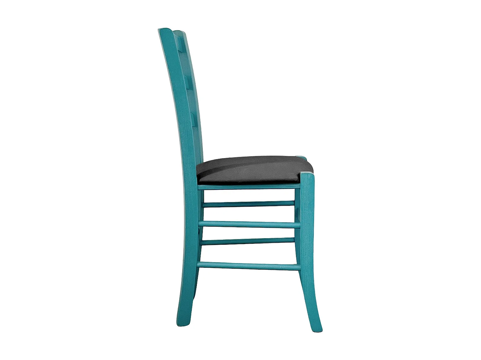 Chaise en bois Turquoise Venezia avec assise en similicuir beige