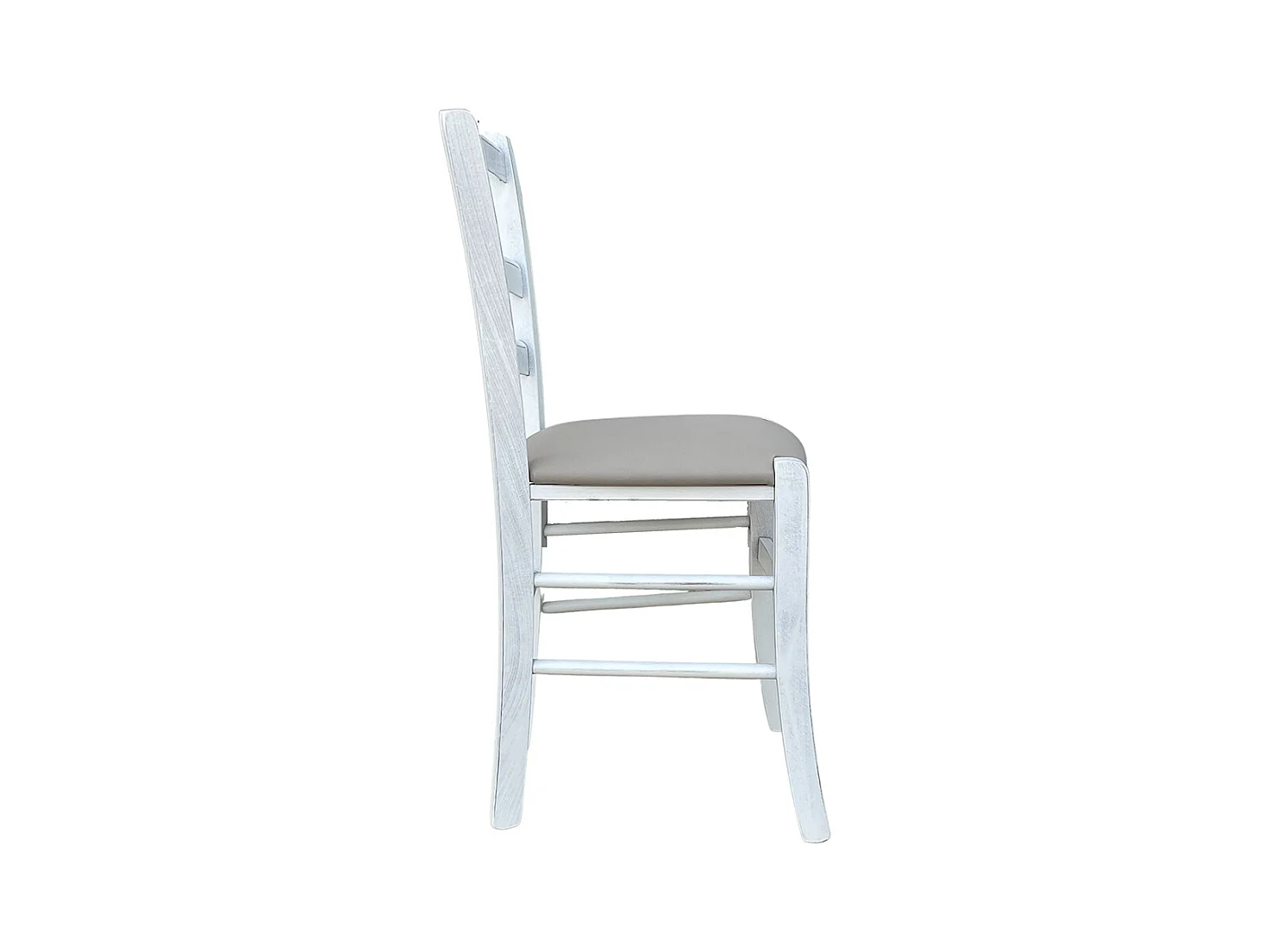 Chaise de campagne en bois de Venise blanche avec assise en simili cuir beige