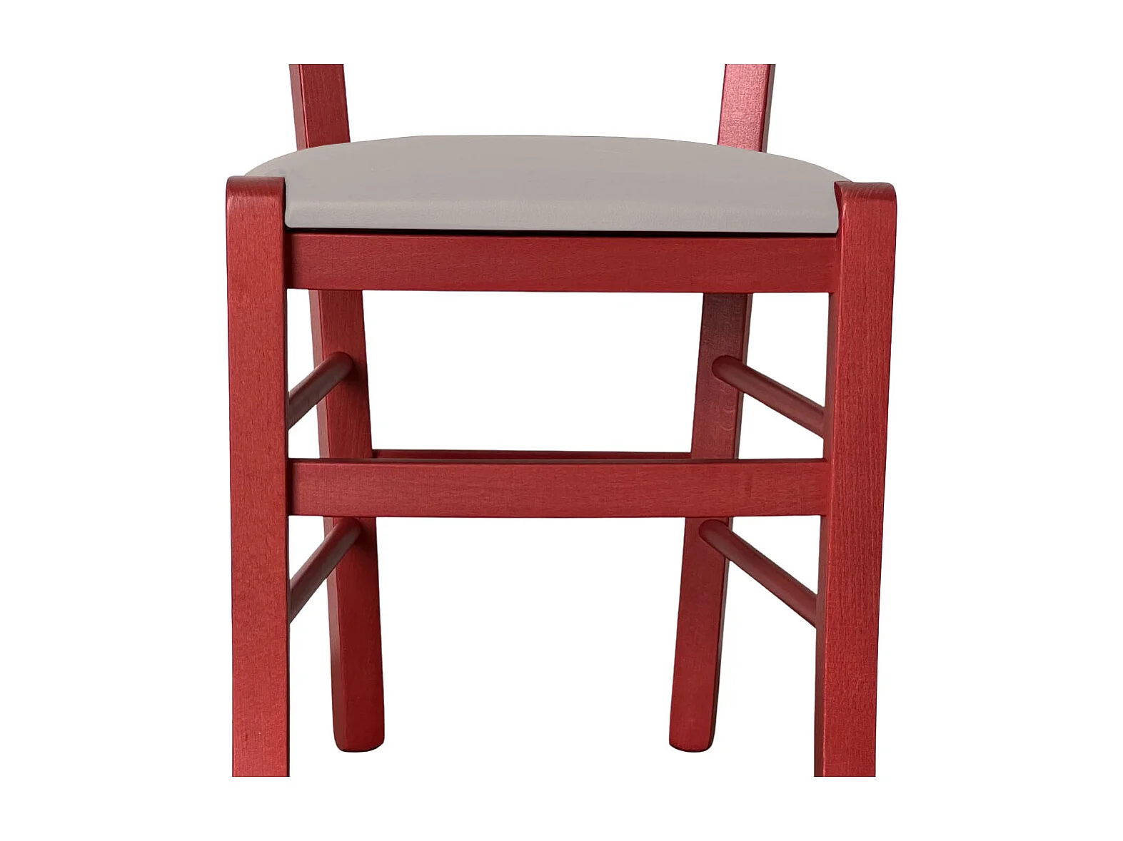 Chaise vénitienne rouge en bois avec assise en similicuir gris tourterelle