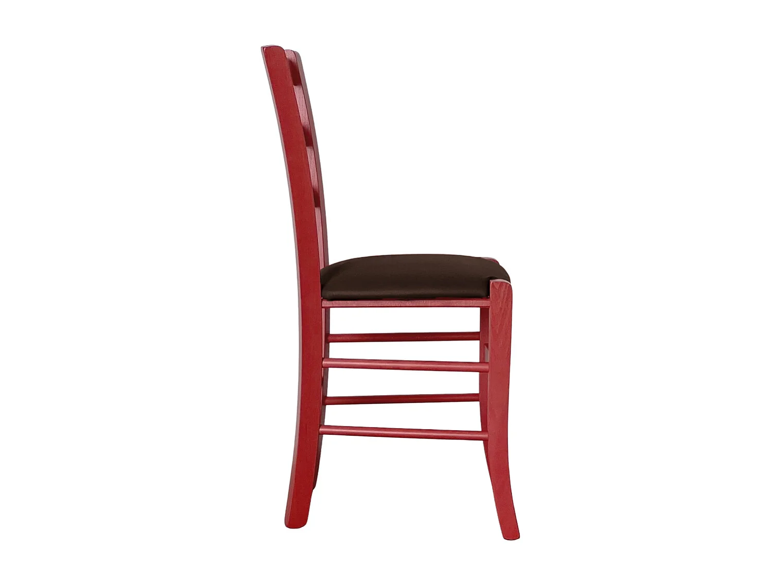 Chaise vénitienne rouge en bois avec assise en similicuir marron