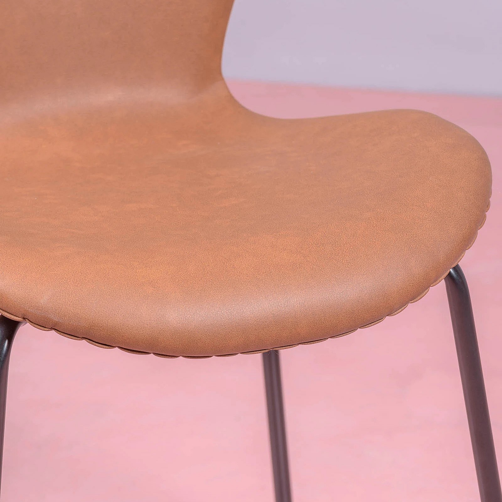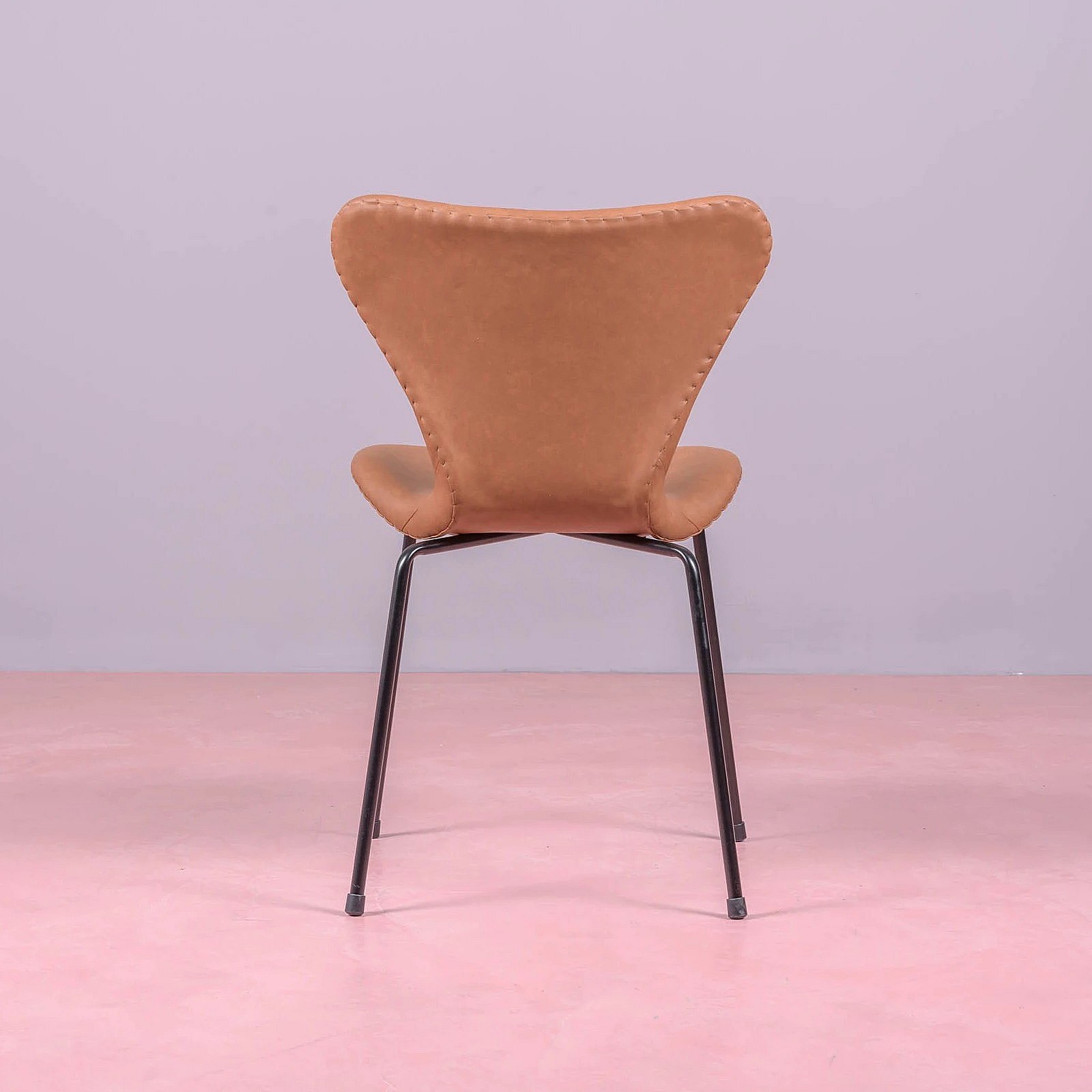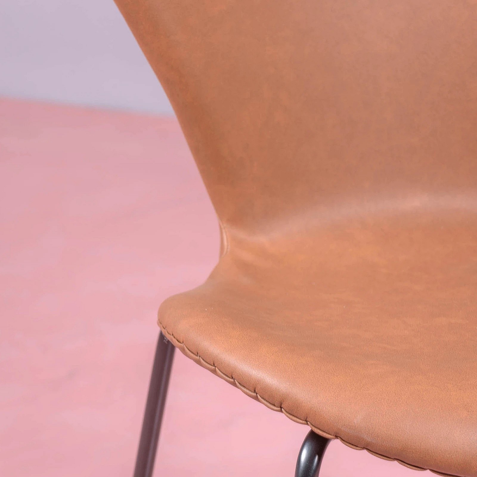 Chaise vintage tapissée de similicuir usé - Seven - Brun