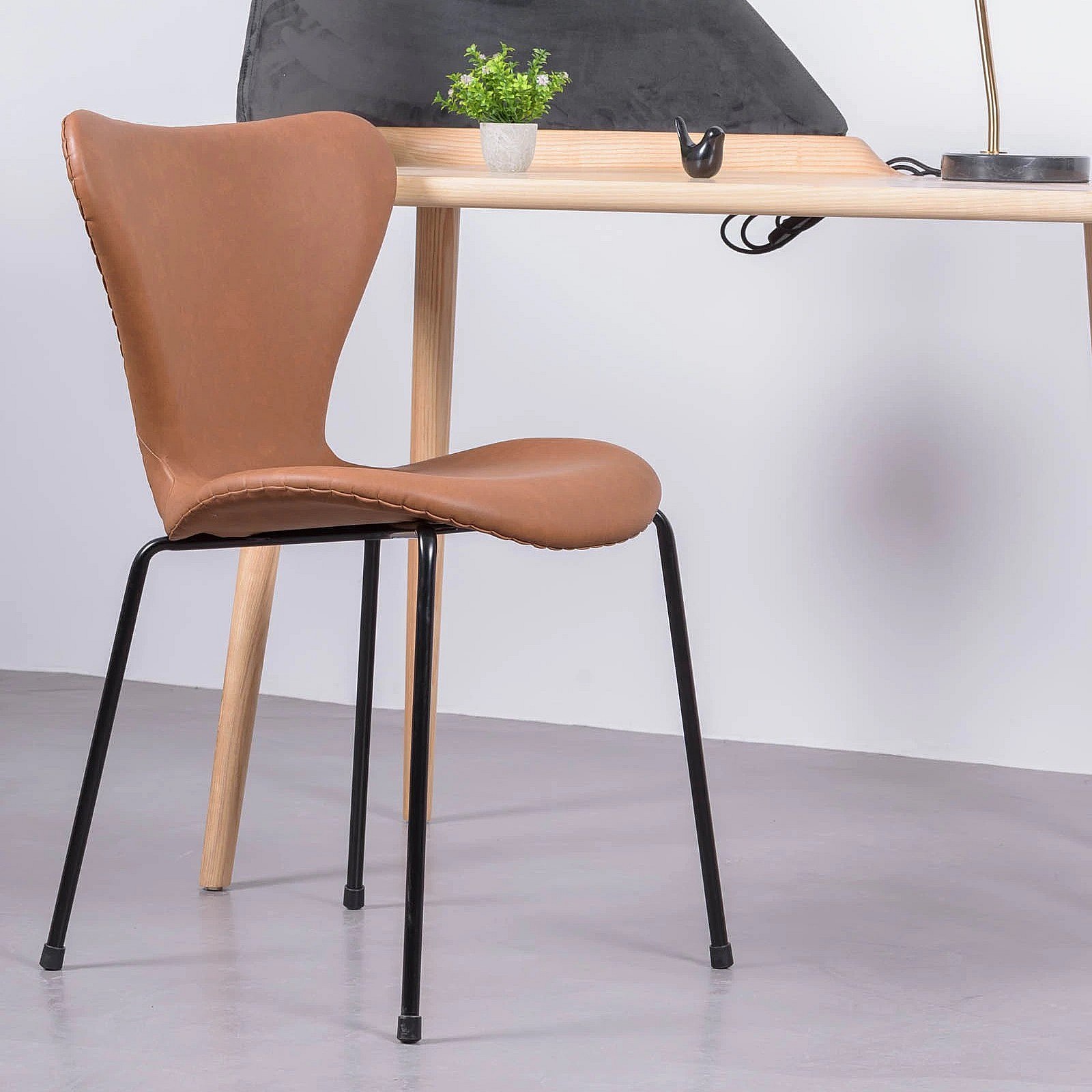 Chaise de salle à manger de style industriel recouverte de similicuir - Elbow - Brun