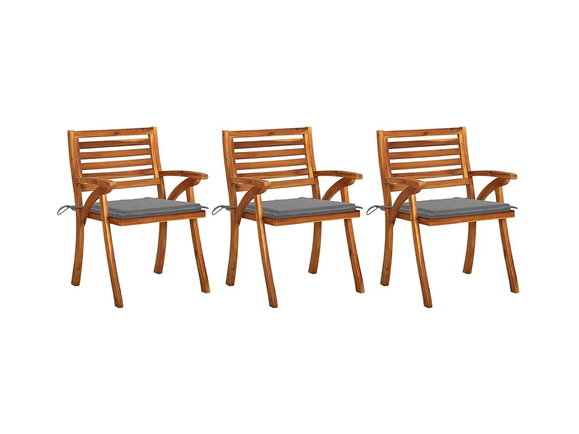 Lot de 3 Chaises à dîner de jardin avec coussins Acacia massif FR36998