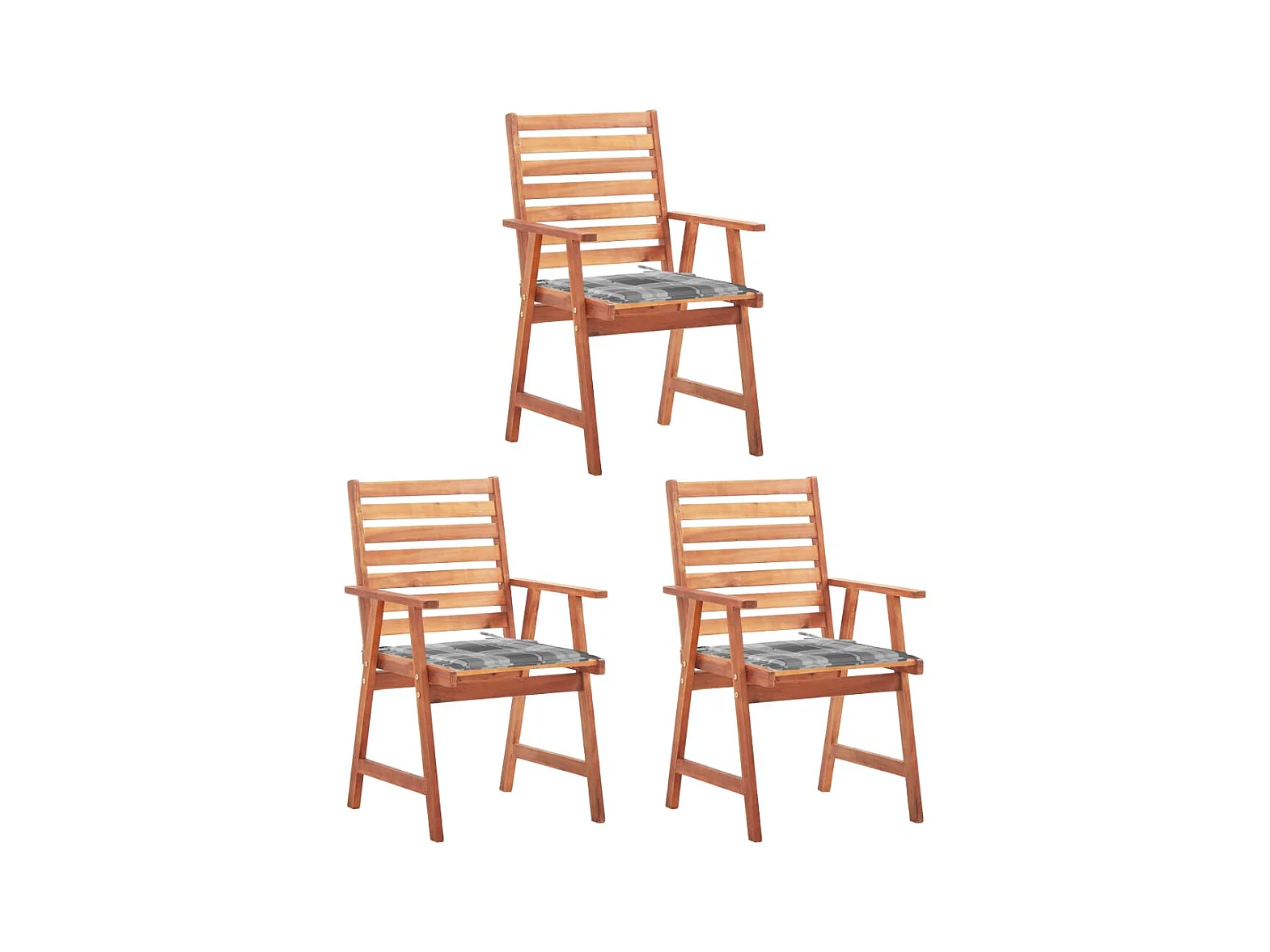 Lot de 3 Chaises à dîner de jardin avec coussins Acacia massif FR36998