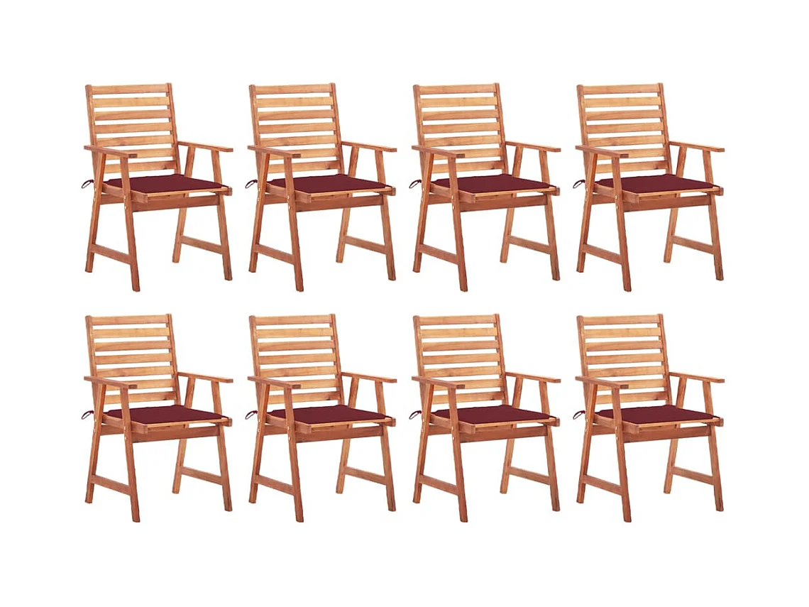 Chaises à dîner d'extérieur 8 pièces avec coussins Acacia massif