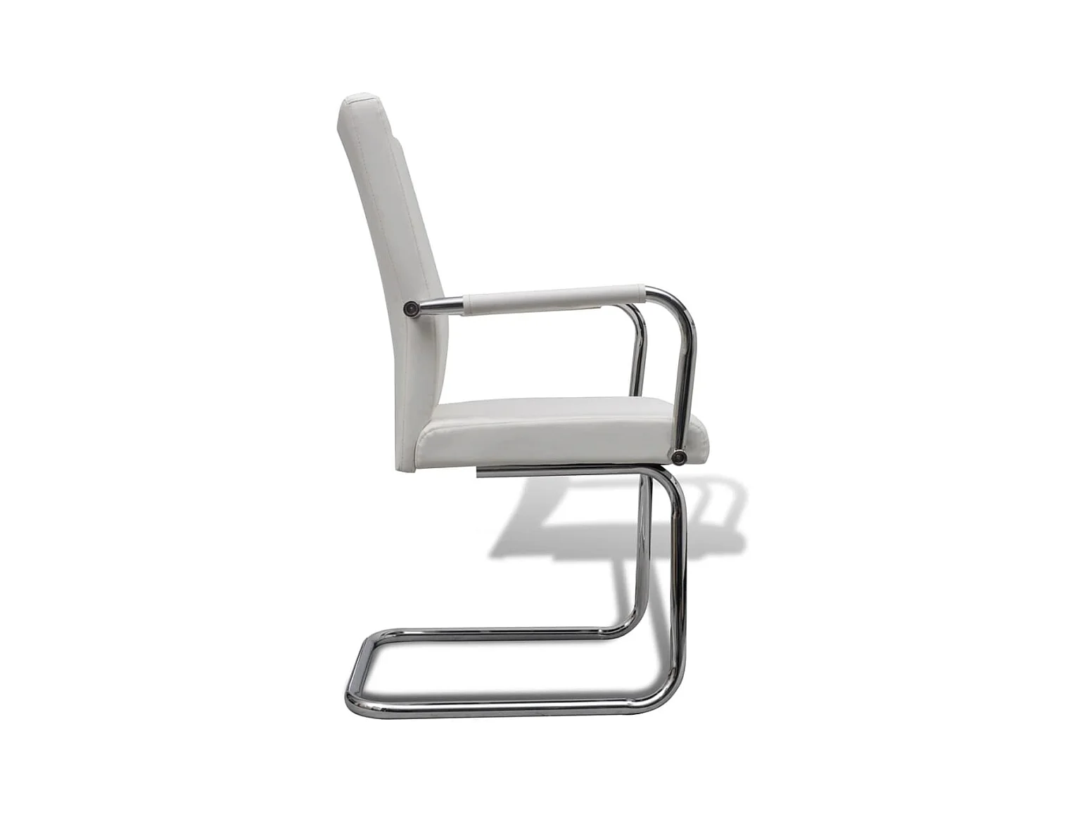 Lot de 2 chaises cantilever avec Assise rembourrée en PU, blanc
