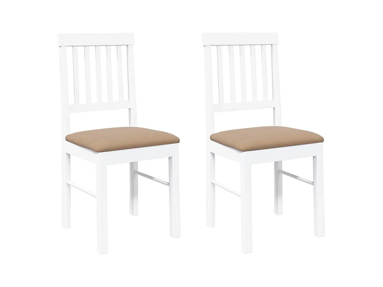 Chaises à manger coussins 2 pcs blanc bois massif caoutchouc