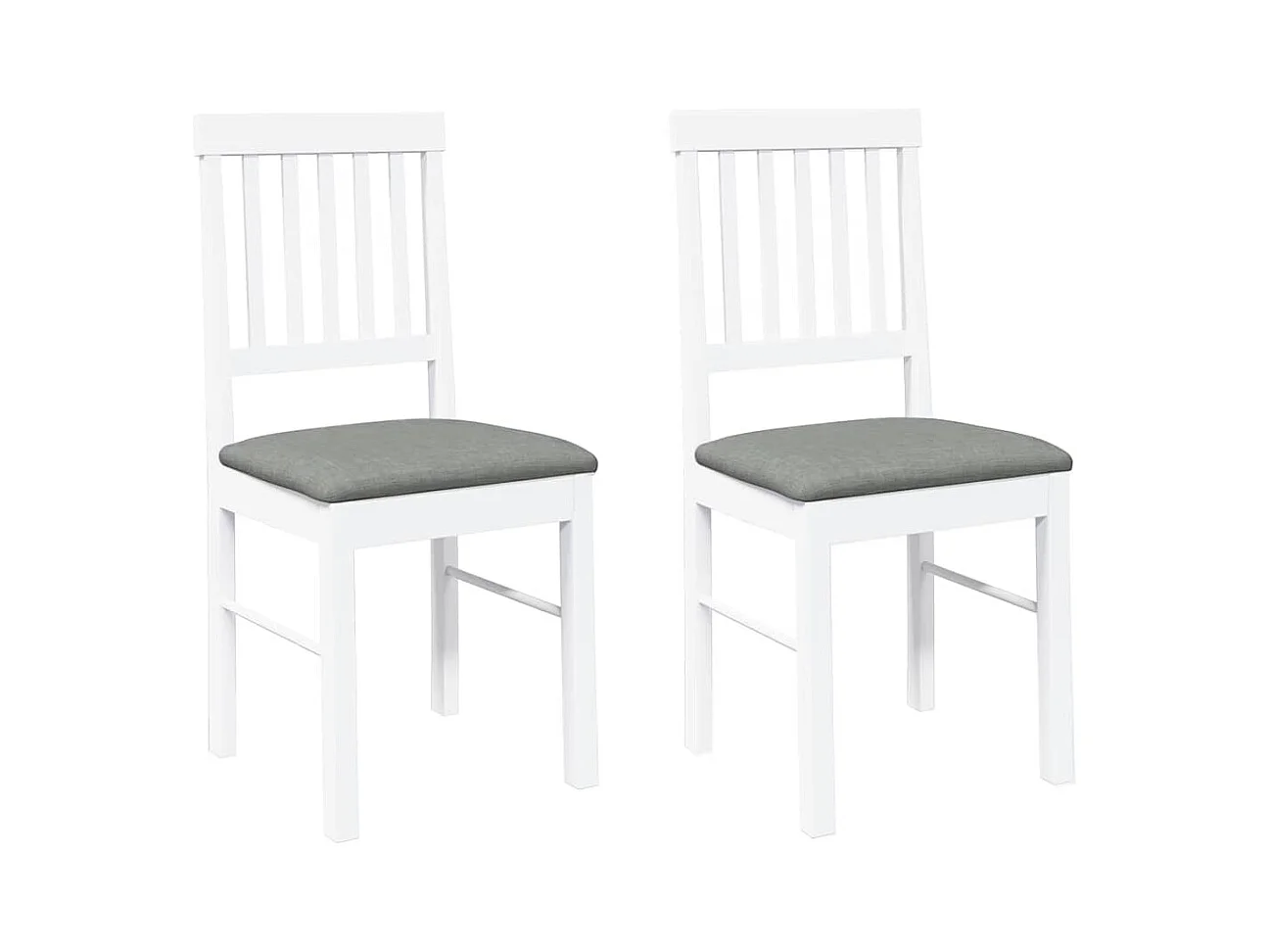 Chaises à manger coussins 2 pcs blanc bois massif caoutchouc