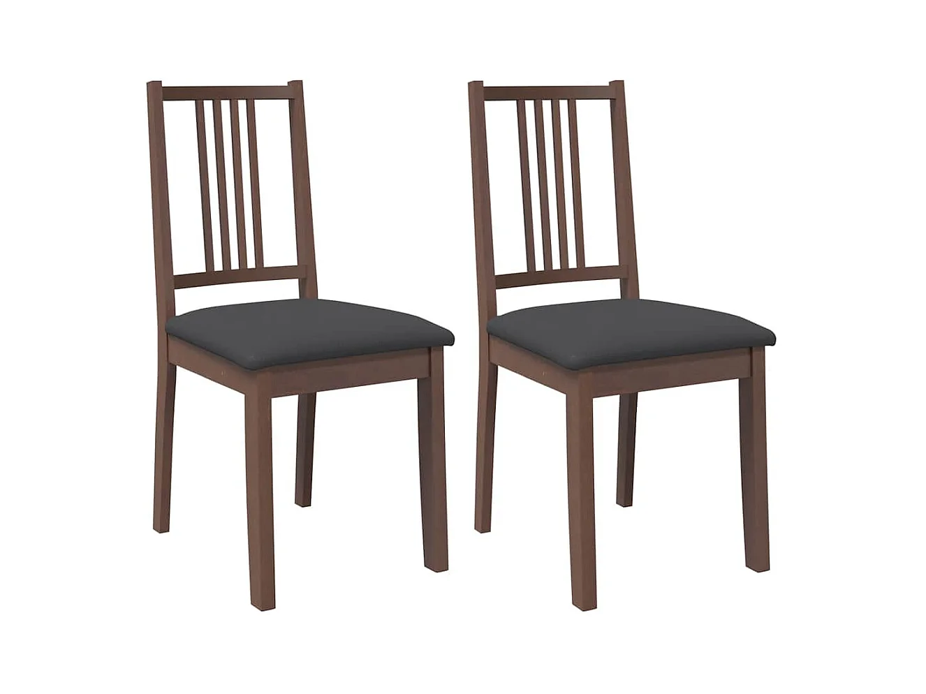 Chaises à manger coussins 2 pcs marron bois massif caoutchouc