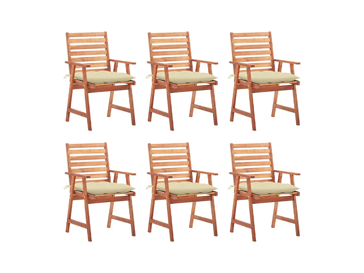 Chaises à manger d'extérieur lot de 6 et coussins Acacia massif