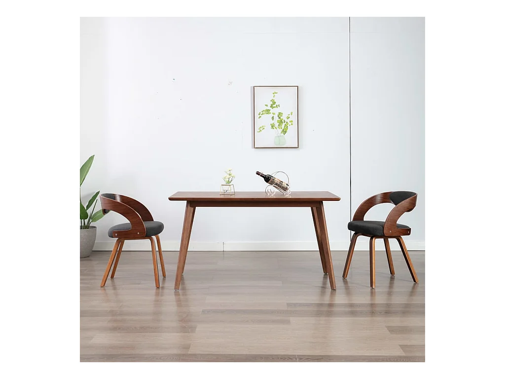 Chaises à manger lot de 2 gris foncé bois courbé et tissu