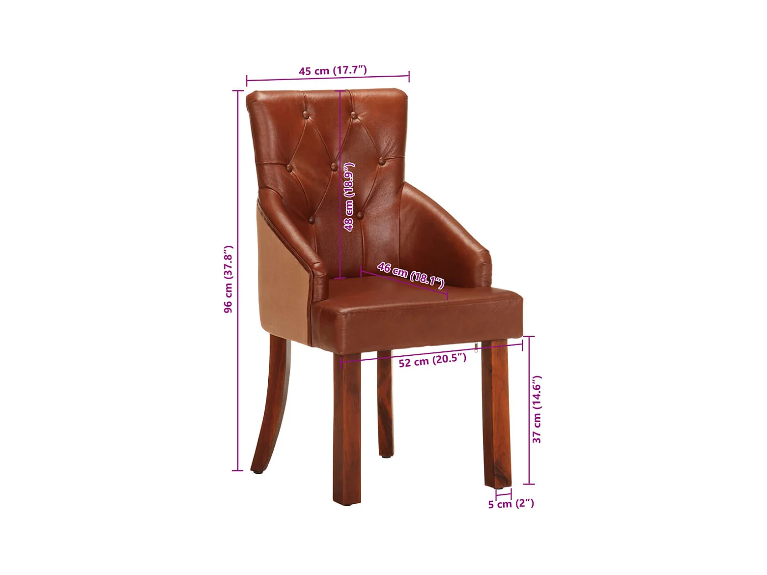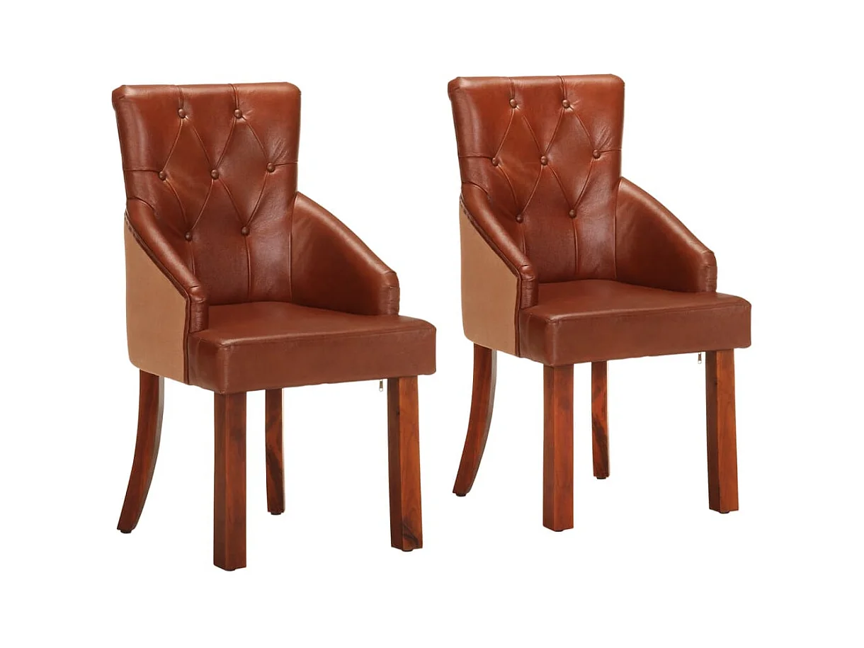 Chaises à manger lot de 2 marron cuir de chèvre véritable