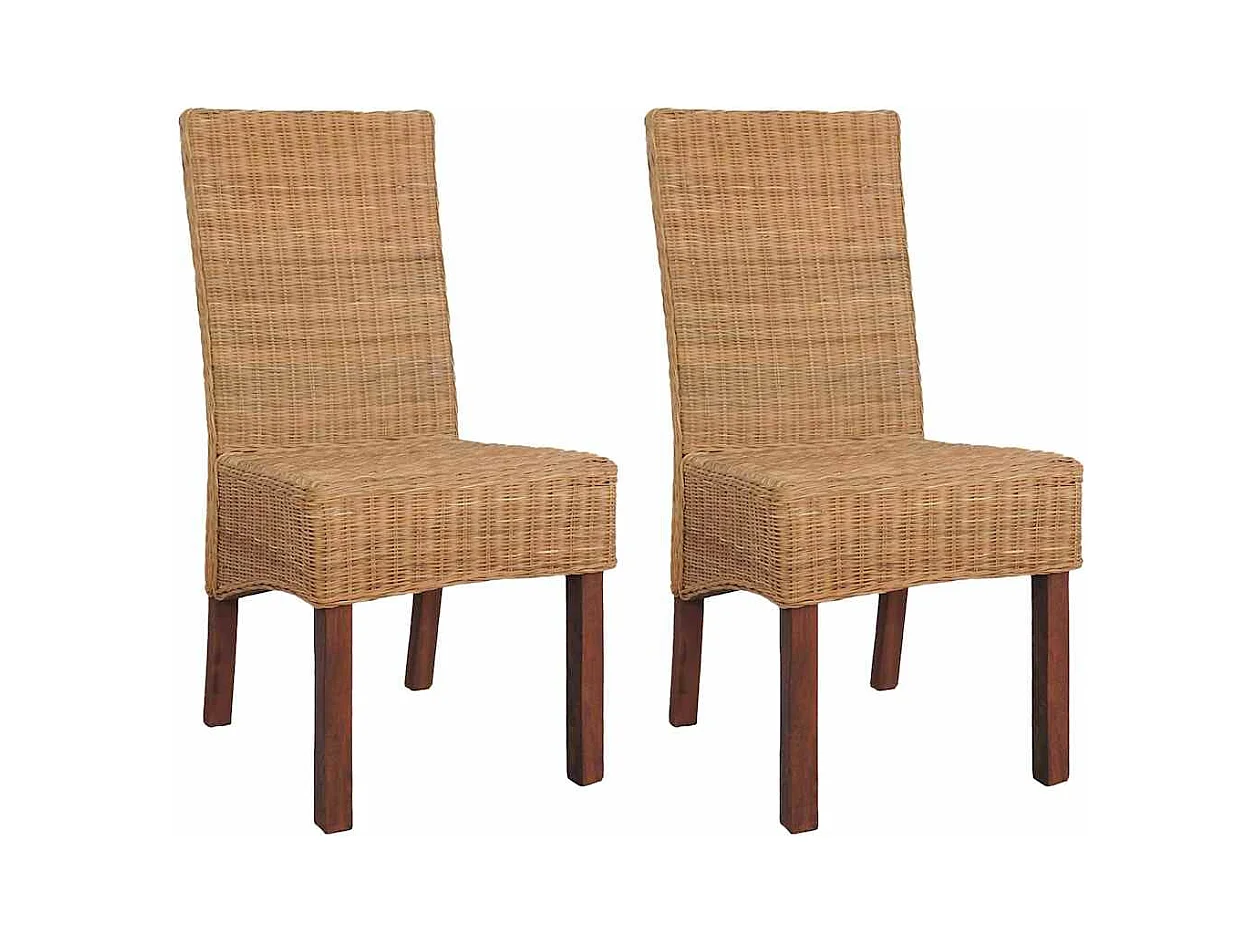 Chaises à manger lot de 2 marron rotin kubu et bois d'acajou