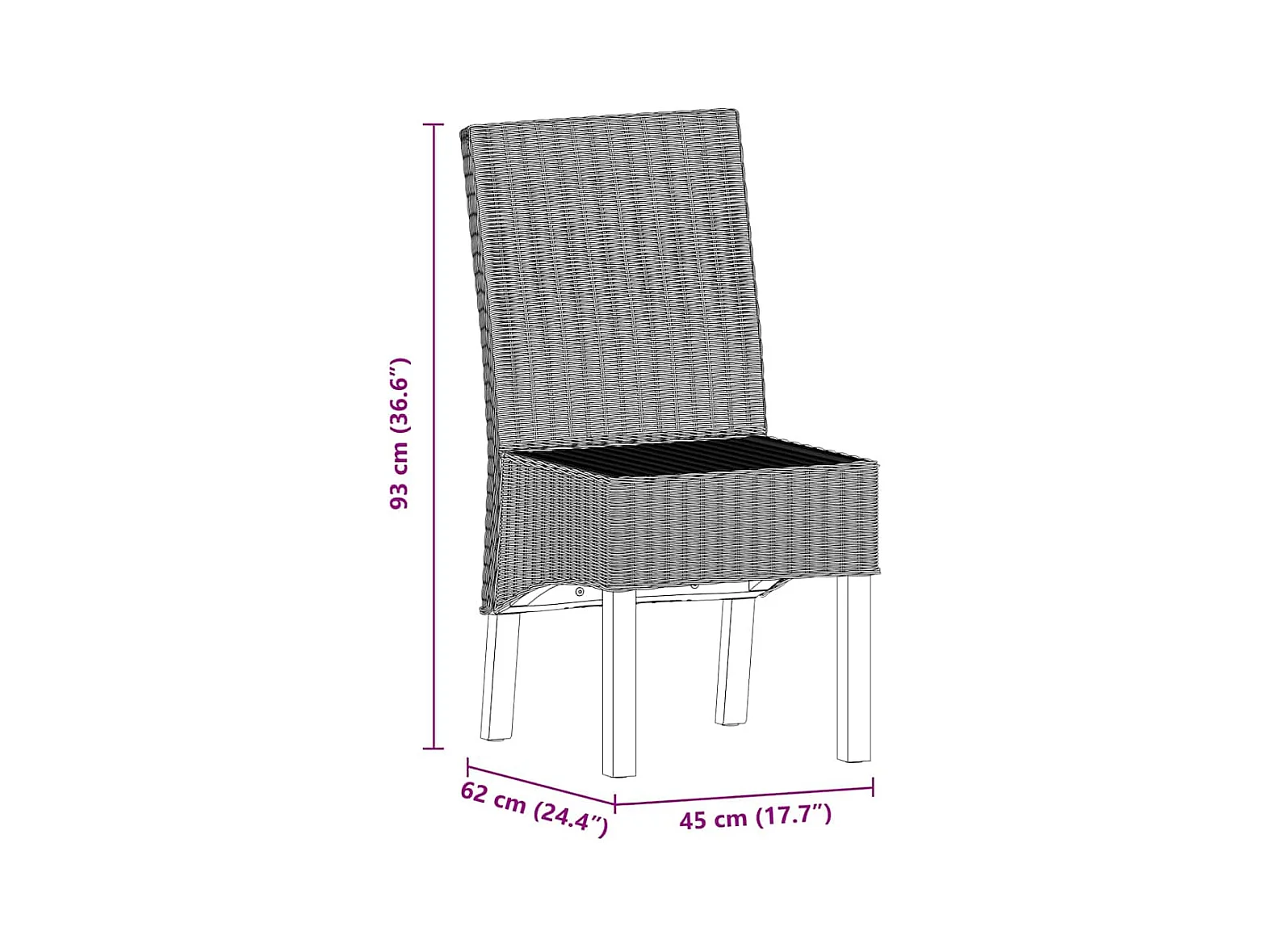 Chaises à manger lot de 2 rotin kubu et bois d'acajou