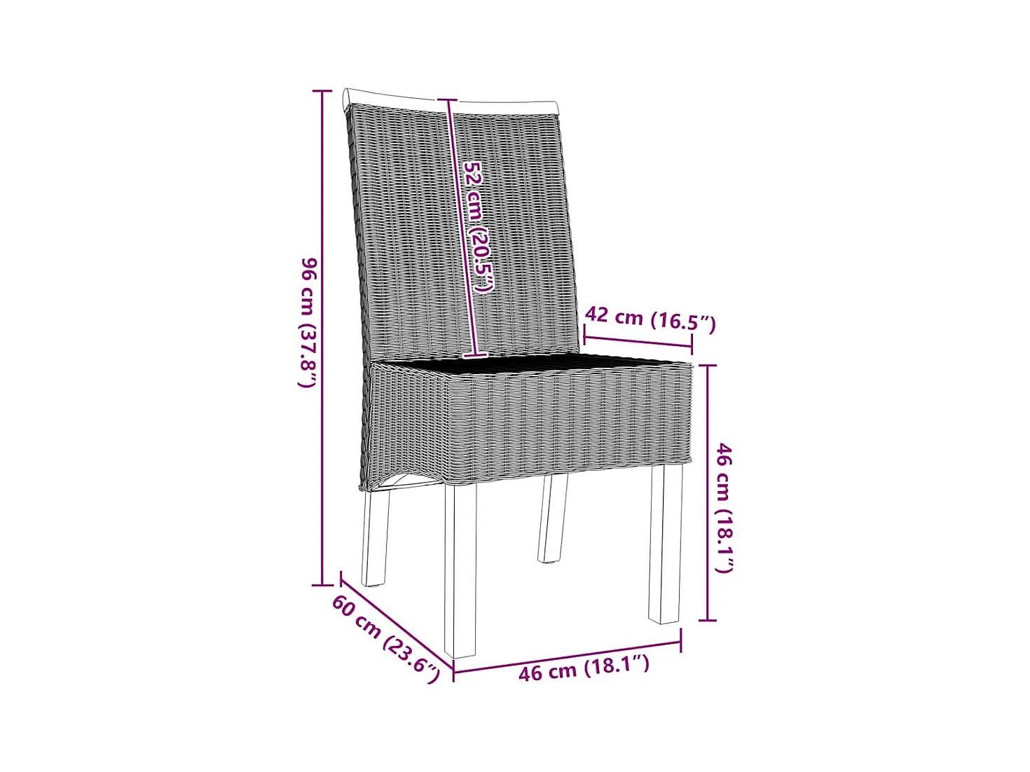 Chaises à manger lot de 2 bois solide de manguier et abaca