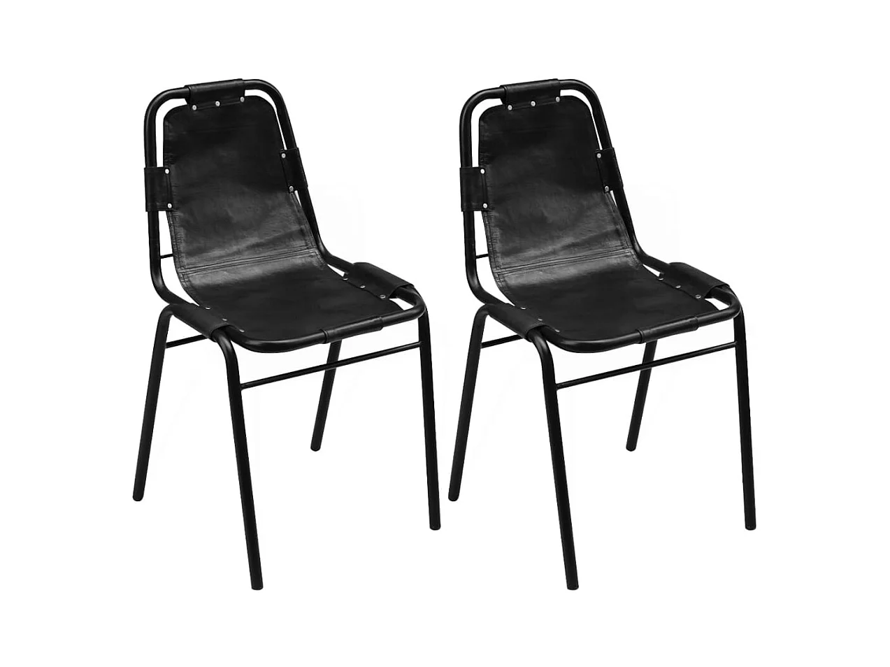Lot de 2 chaises de salle à manger en cuir noir PERKO