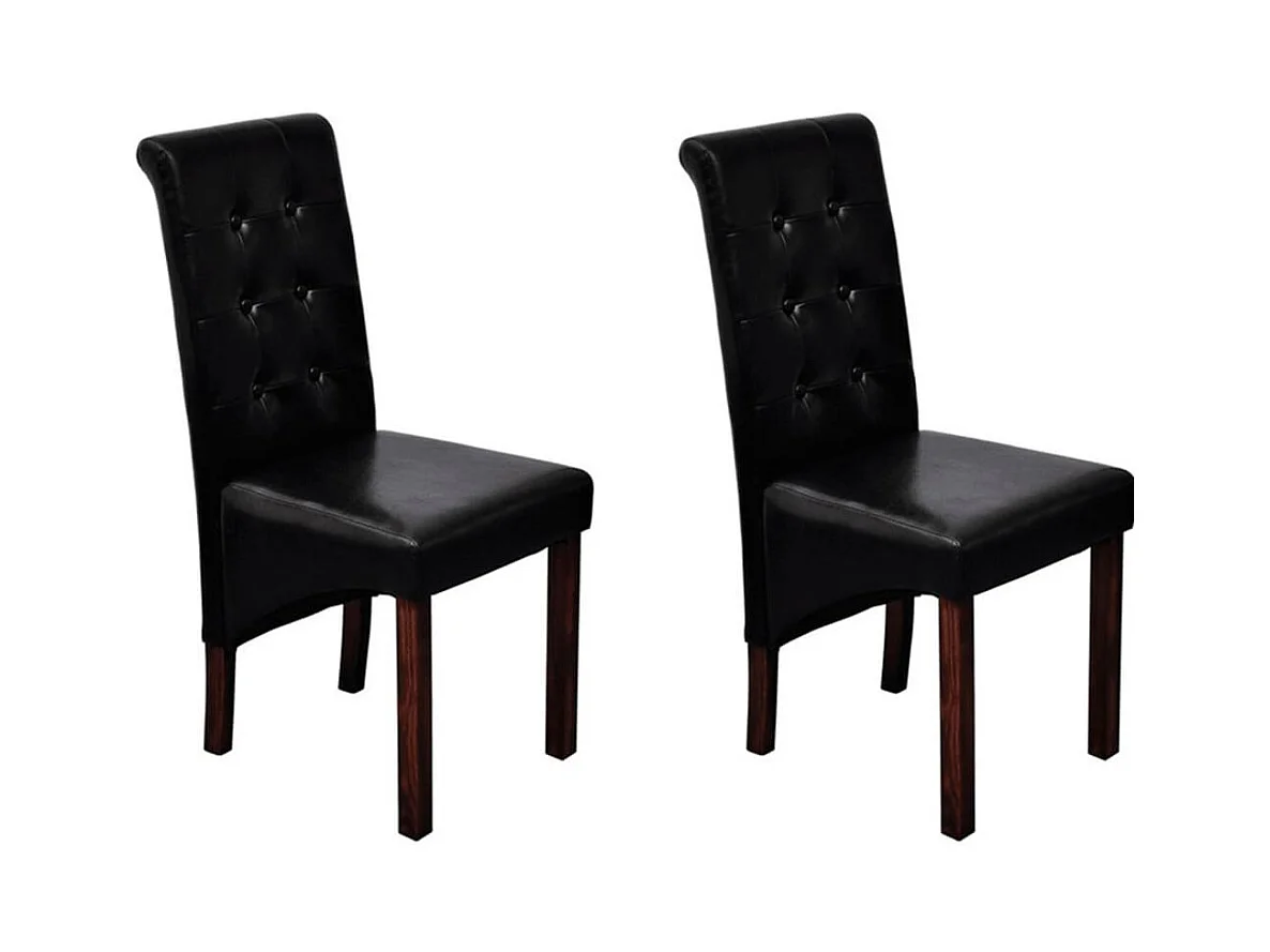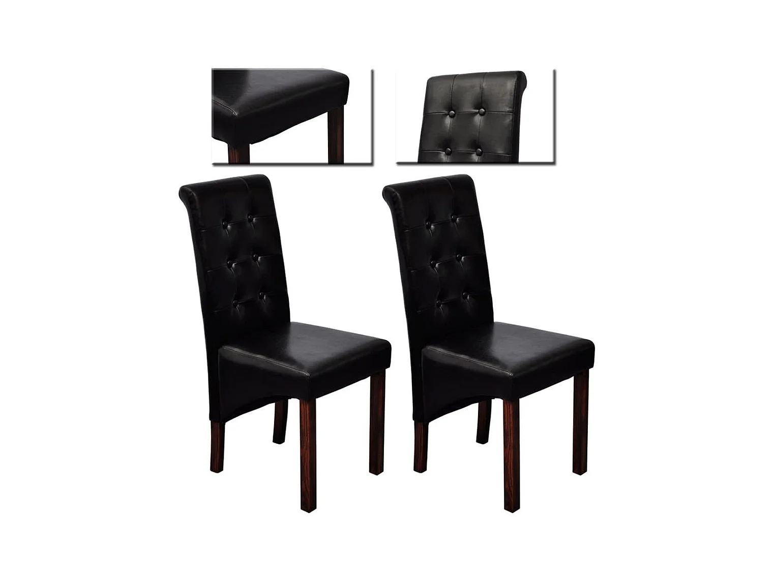 Chaises à manger lot de 2 noir cuir de chèvre véritable