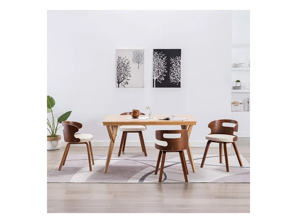 Chaises à manger lot de 4 crème bois courbé et similicuir