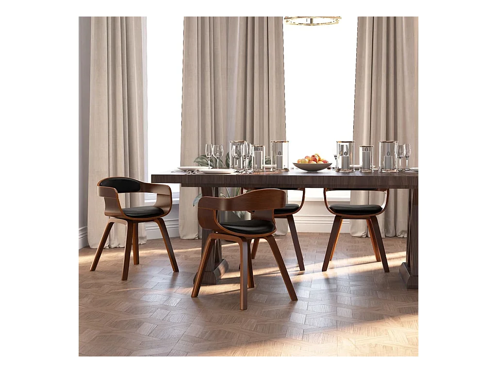 Chaises à manger lot de 4 noir bois courbé et similicuir