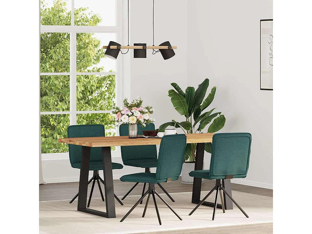 Chaise tissu vert foncé et pieds métal effet bois Mosac - Lot de 4