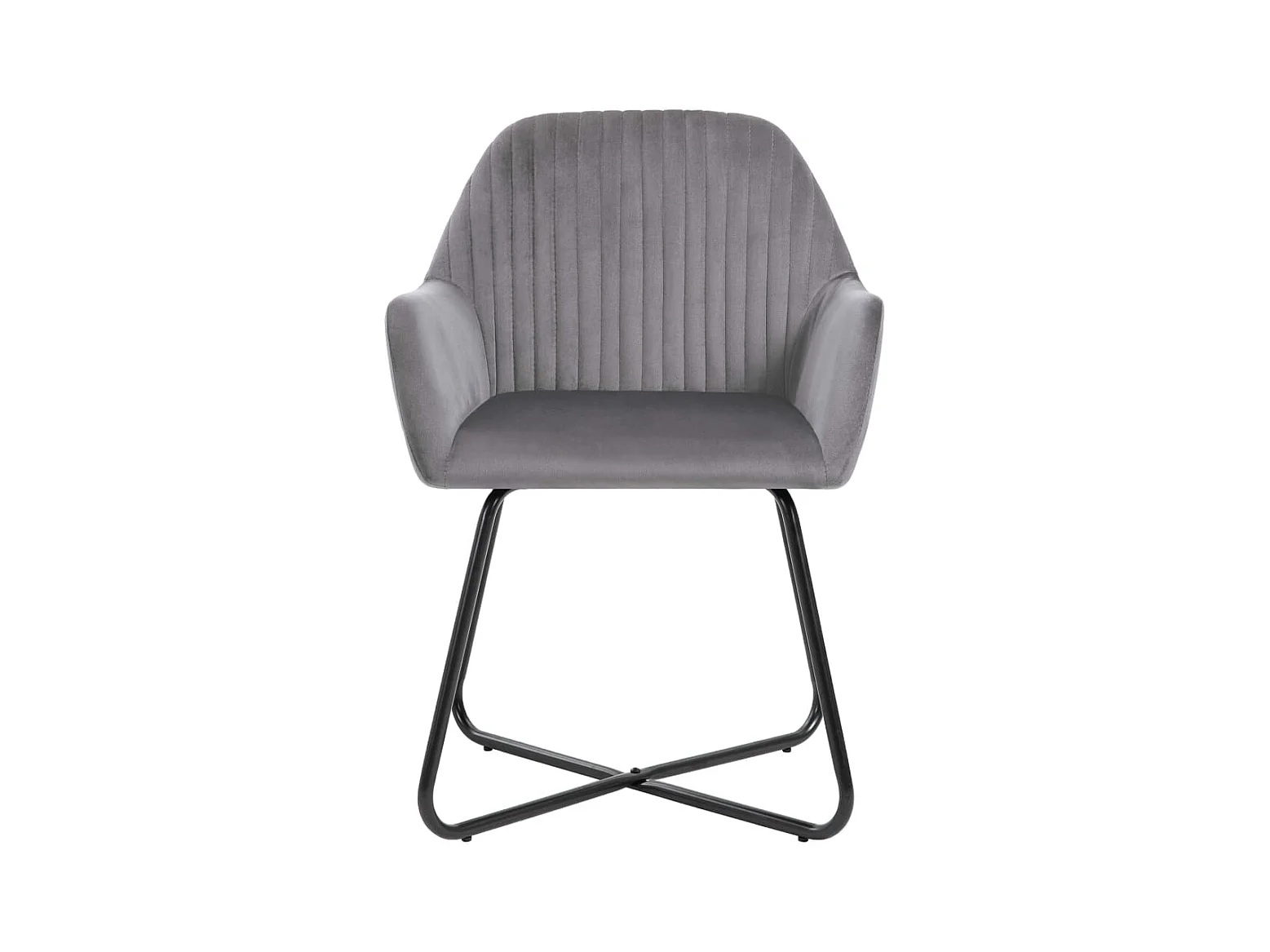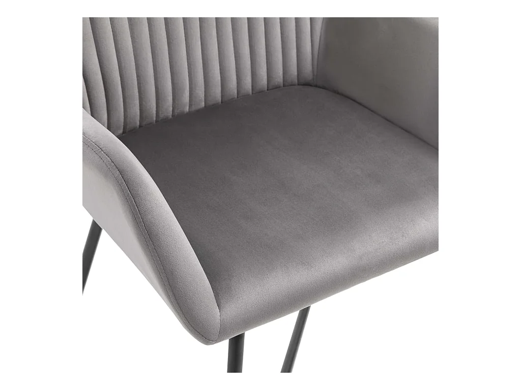 Ensemble de 6 chaises de salle à manger, chaise rembourrée avec garniture cloutée, pieds en bois massif, revêtement en velours, gris, avec motif heurtoir de porte