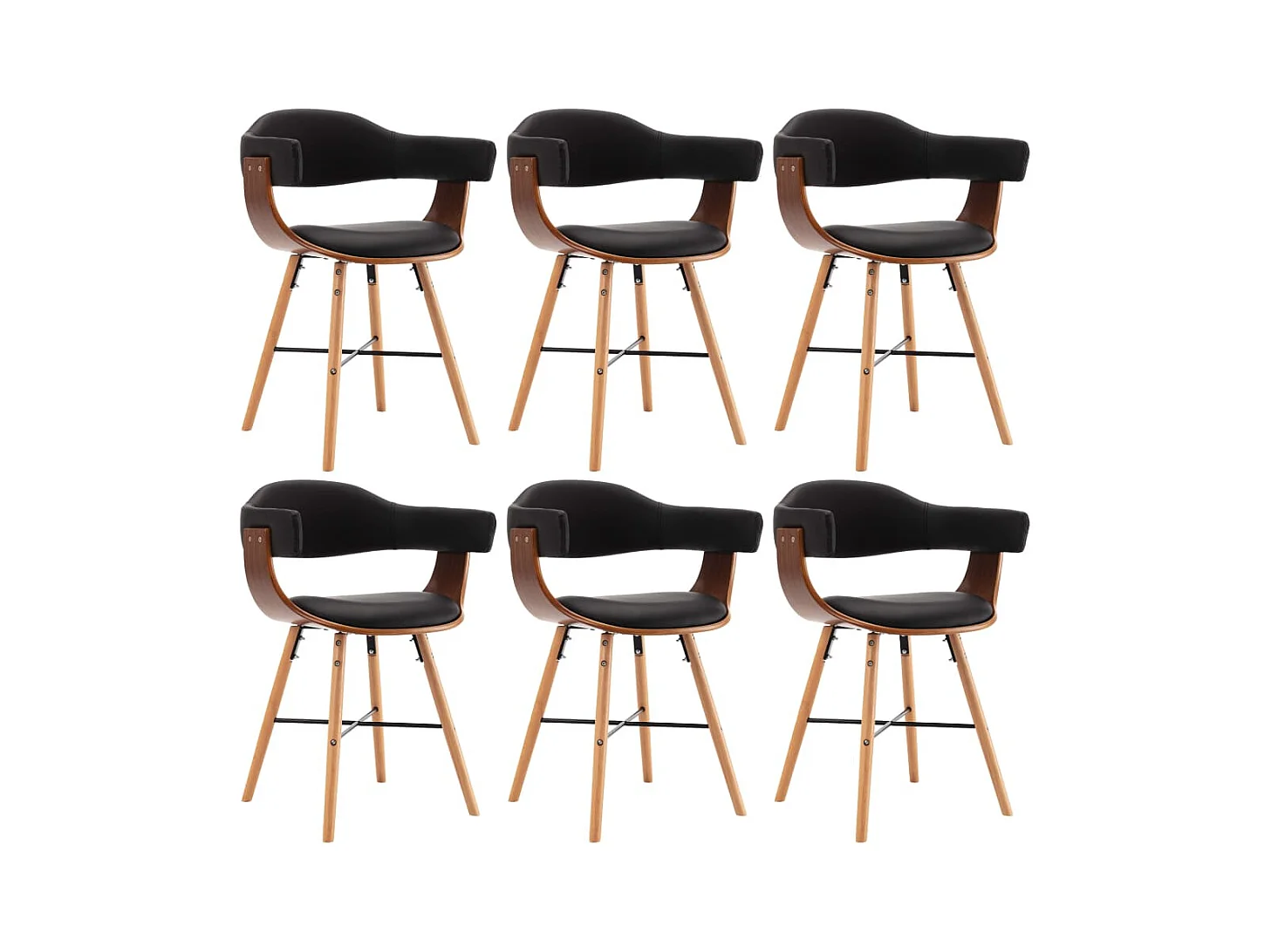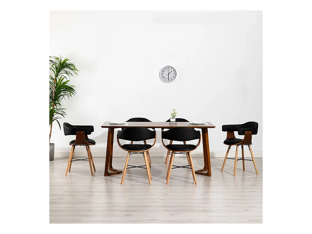 Chaises à manger lot de 6 noir similicuir et bois courbé