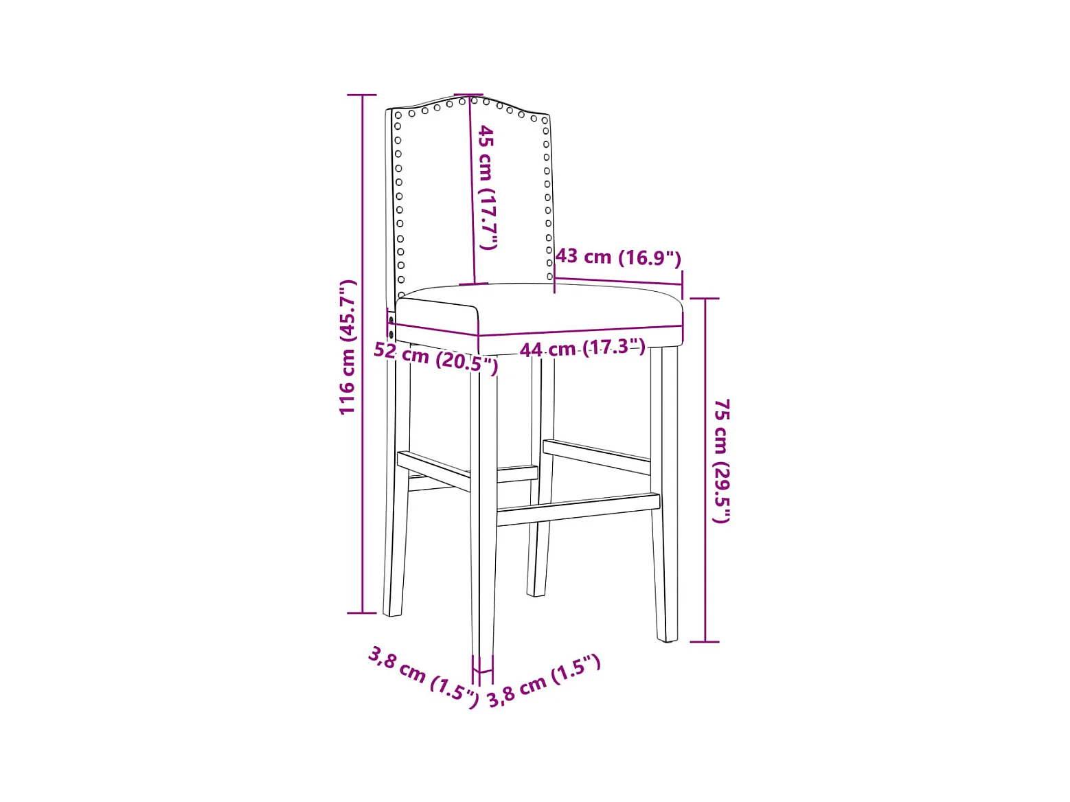 Chaises de bar lot de 2 bois massif d'hévéa et tissu