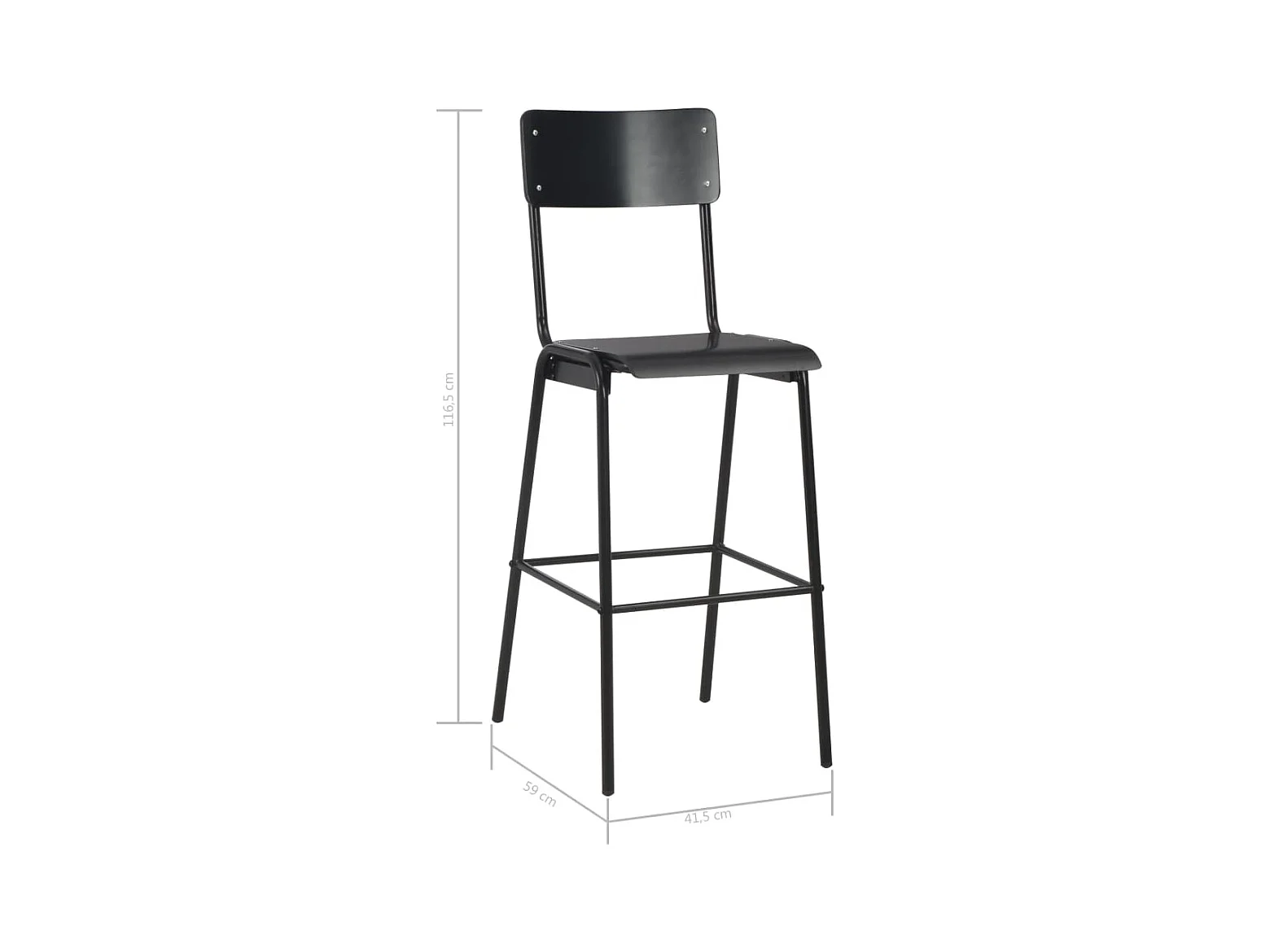 Chaises de bar lot de 4 noir contreplaqué solide et acier