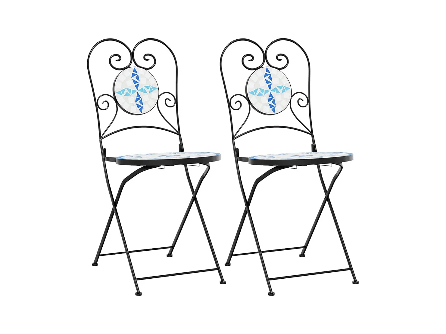 Chaises de bistro pliables lot de 2 bleu et blanc céramique