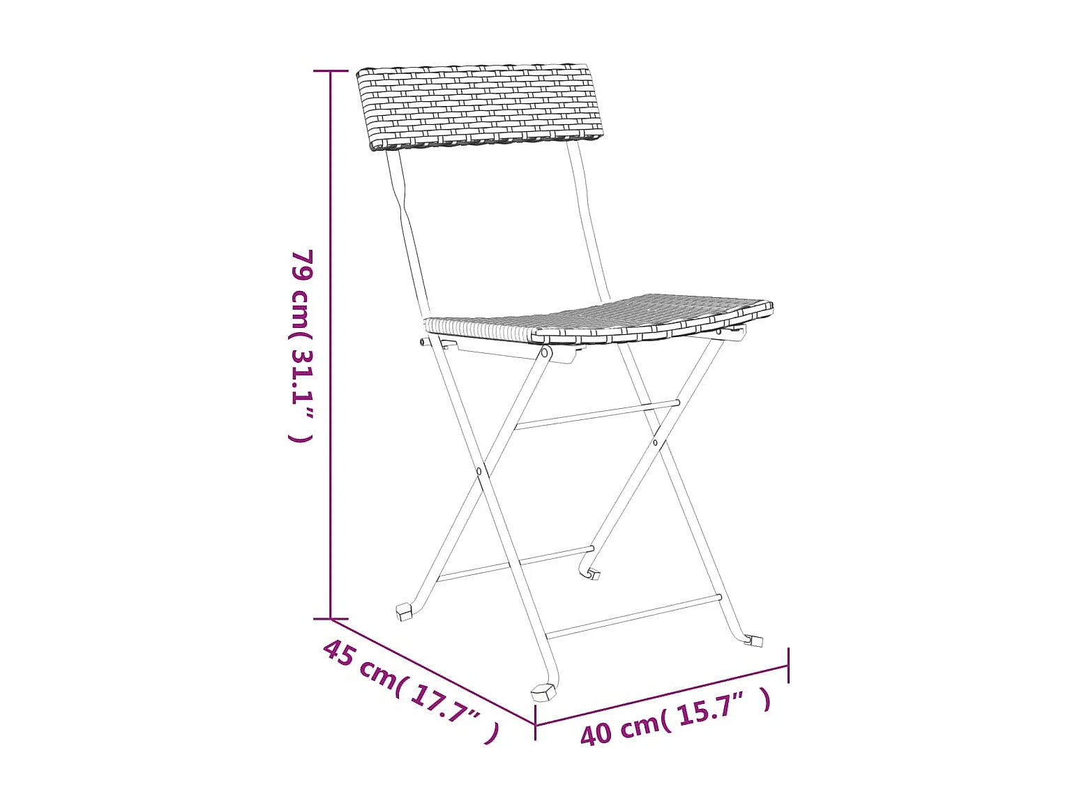 Chaises de bistrot pliantes lot de 4 Gris Résine tressée acier