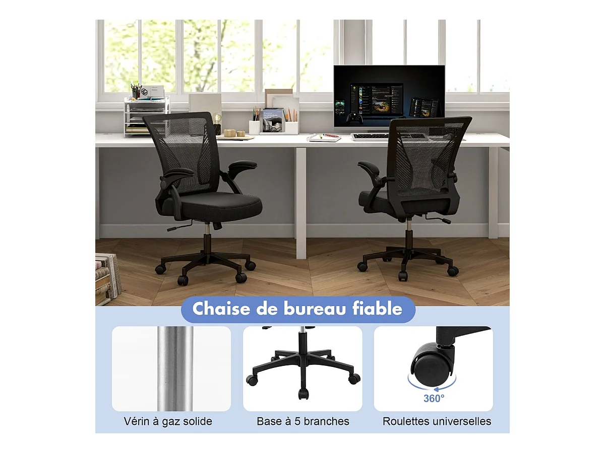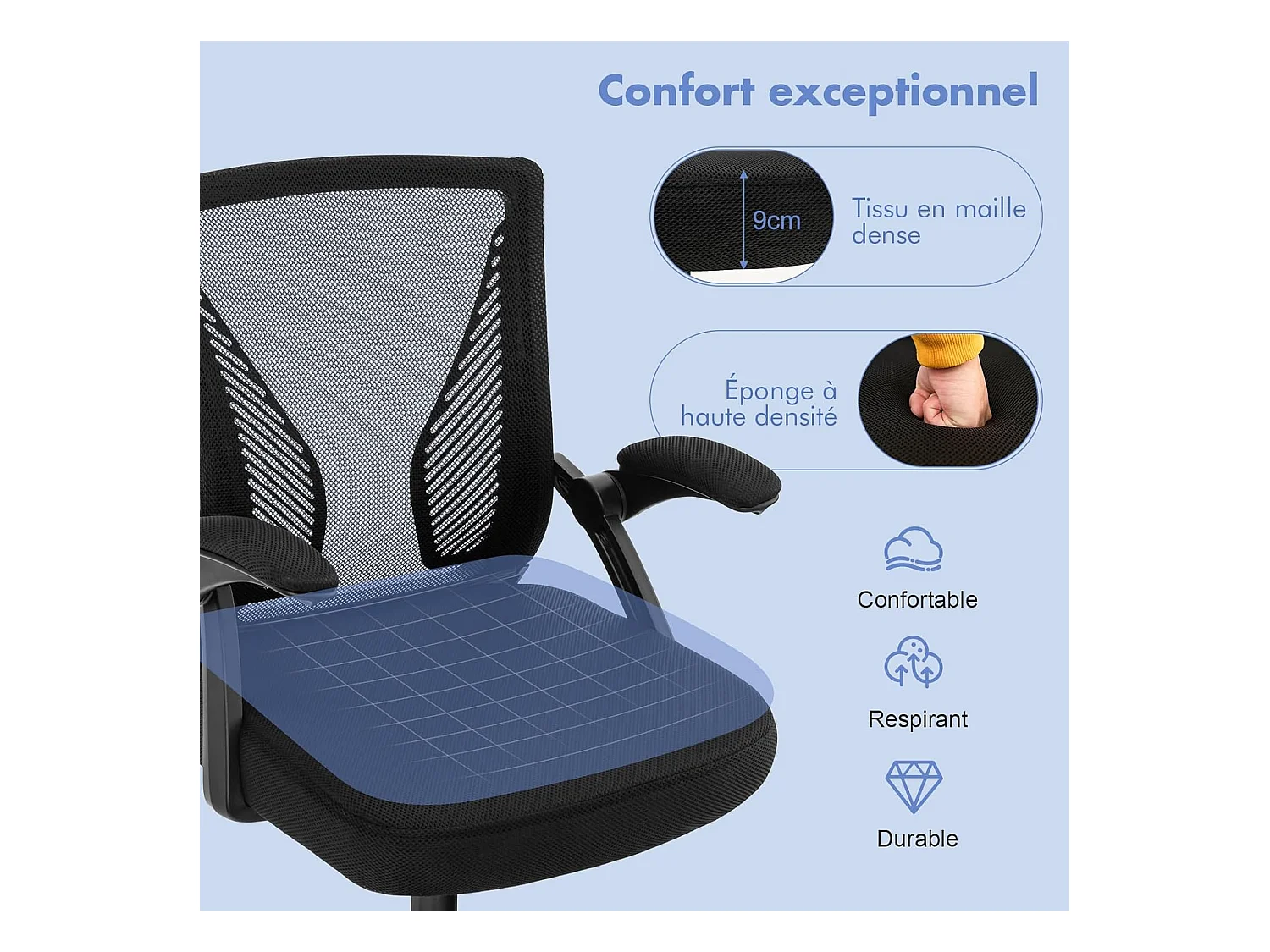 Chaises de Bureau Ergonomique, Chaises de Conférence Pivotante Réglable en Maille avec Accoudoirs Rabattables, Dossier à Bascule à 30°, Noir